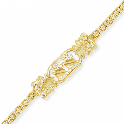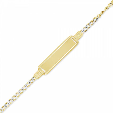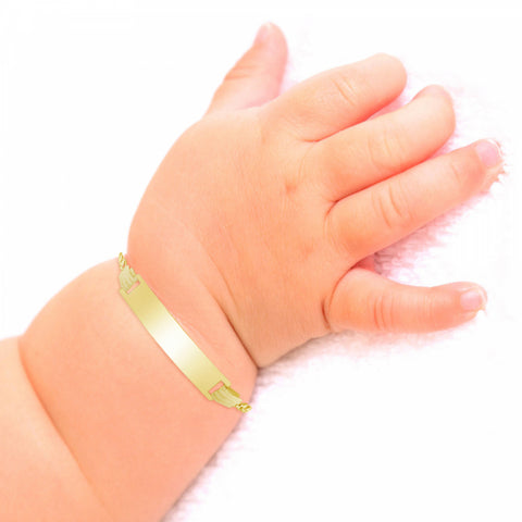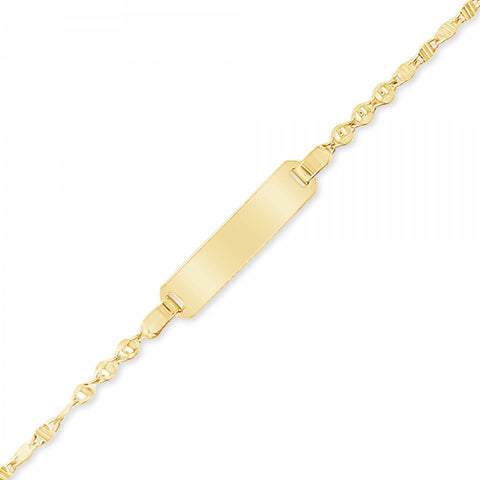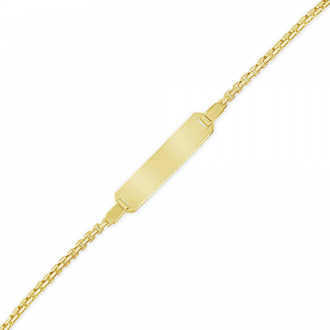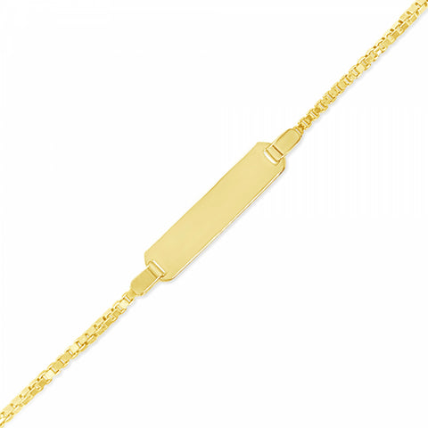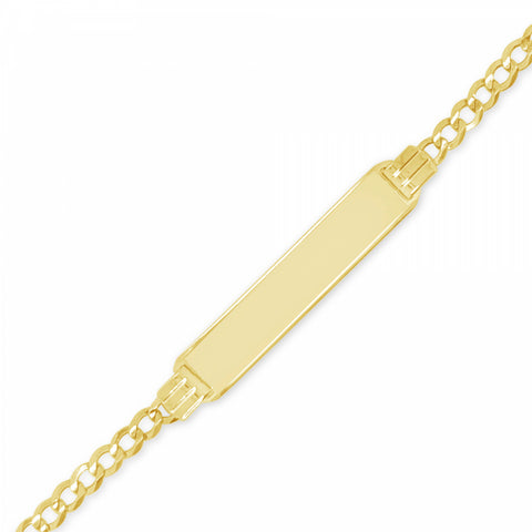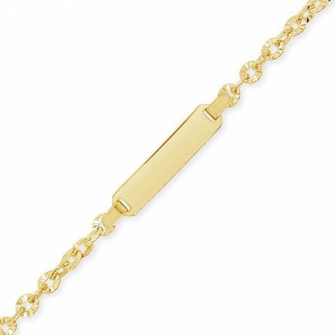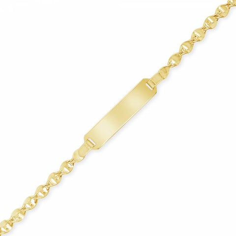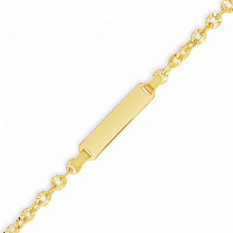 Add a touch of elegance and sophistication to your child's jewelry collection with our 10K Yellow Gold Chino Link ID Bracelet. This stunning piece of jewelry is made from high-quality 10K yellow gold, ensuring that it lasts a lifetime. The chino link design gives it a classic yet modern look that will complement any outfit.