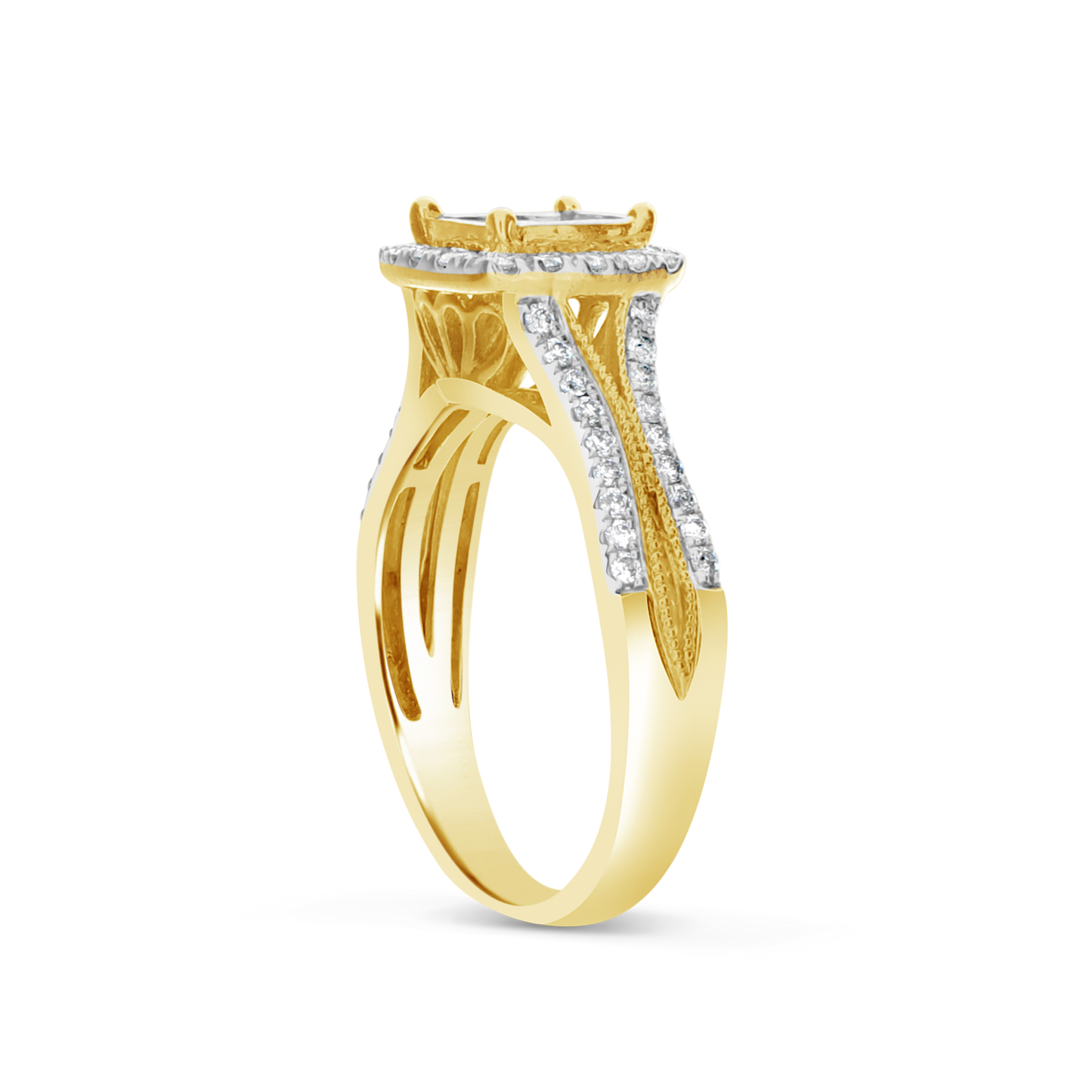 Celebrate your love with this exquisite Diamond Engagement Ring. The spectacular 1 CTW princess-cut diamond serves as the focal point, surrounded by glittering round-cut diamonds is all set on a luxurious 14K yellow gold band. This carefully and perfectly crafted ring is intended to bring out the beauty and brightness of the diamonds, enhancing their fire and shine. The 14K yellow gold ring gives the design a traditional and timeless touch, giving the diamonds a warm and opulent setting. It's a gift that she will treasure forever and a true testament to your undying affection.