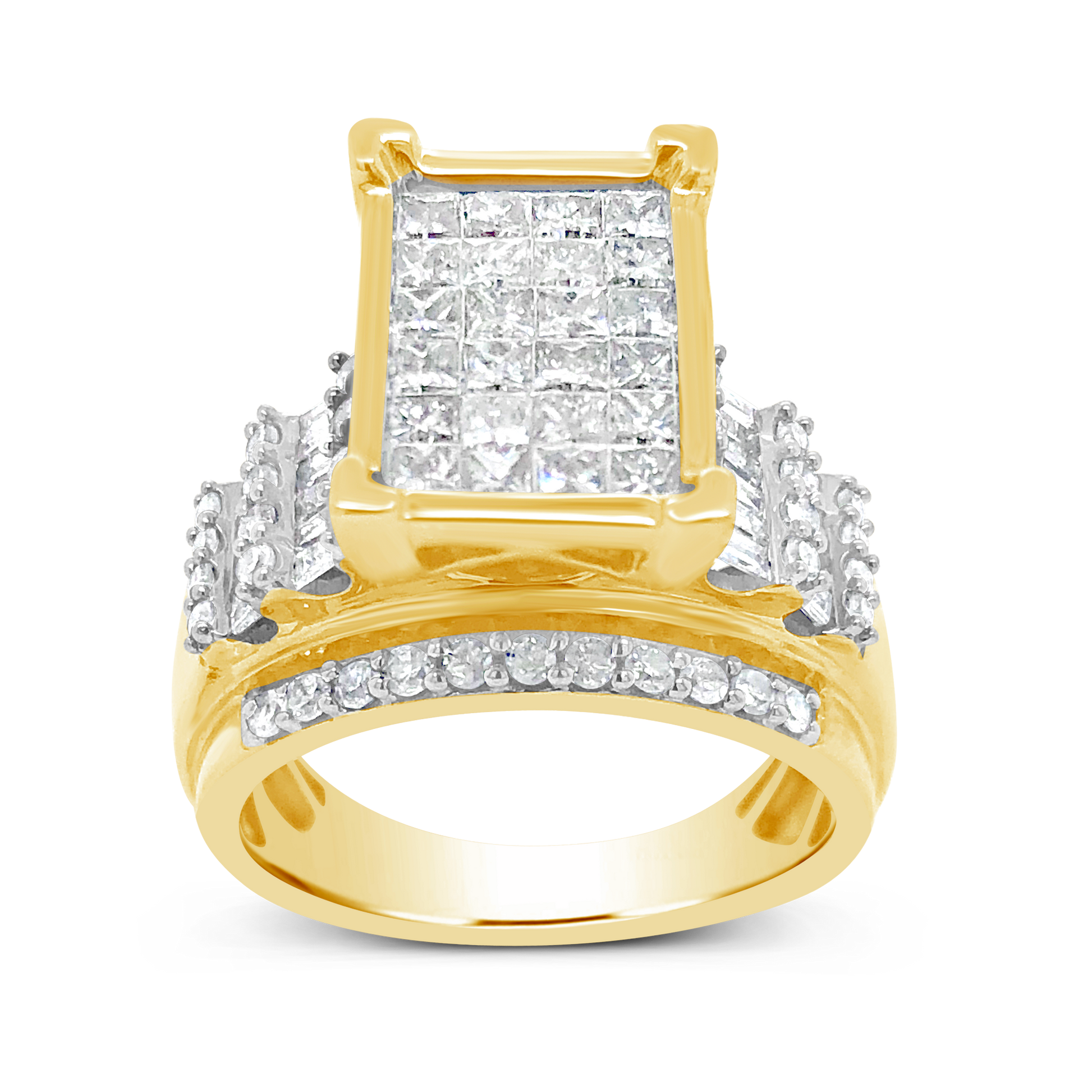 Make her feel truly special with this magnificent Diamond Engagement Ring. Featuring a breathtaking 2-carat total weight of princess and round cut diamonds, accented with baguette diamonds, and set in 10K yellow gold, this ring is the perfect symbol of your love and devotion.