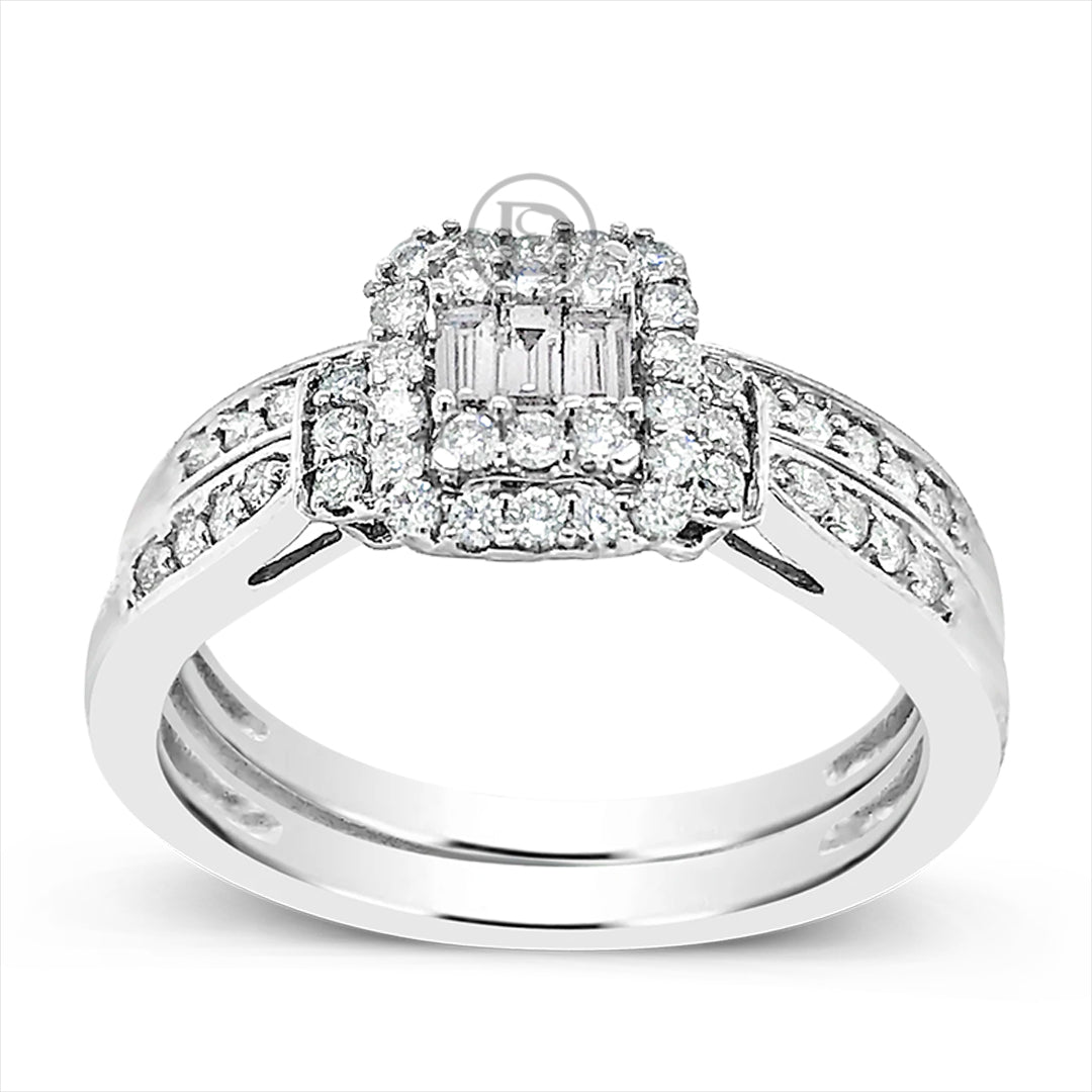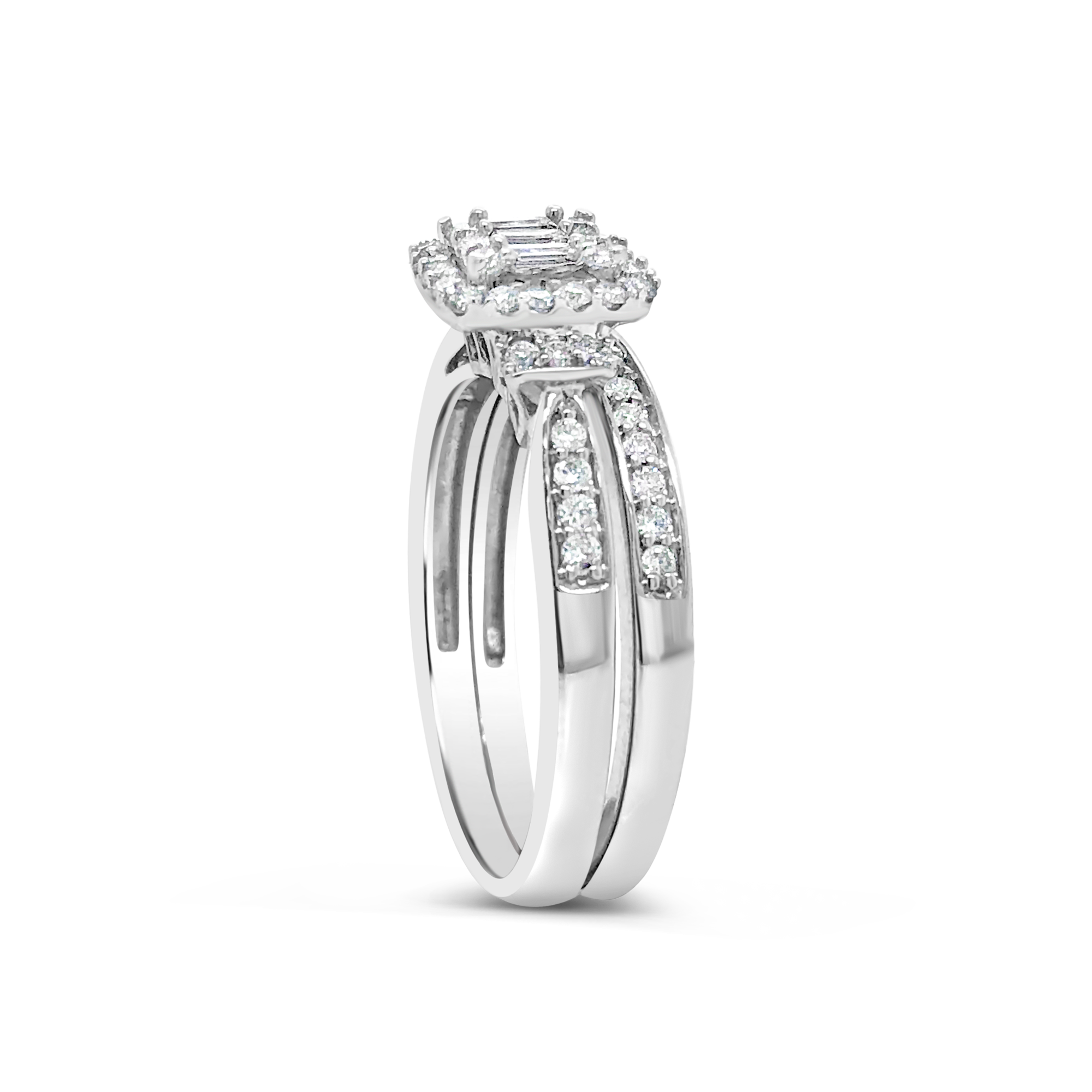 Celebrate your love story with our Diamond Engagement Ring Bridal Set. This stunning set features .50-carat diamonds, elegantly set in high-quality 14K White Gold, to create a timeless and sophisticated look. The wedding band is expertly crafted with smaller diamonds that beautifully complement the engagement ring, creating a cohesive and seamless bridal set. Our Diamond Engagement Ring Bridal Set is perfect for the modern bride who appreciates a classic and elegant style. This set is not only a symbol of your love and commitment but also a precious heirloom that can be passed down for generations to come.