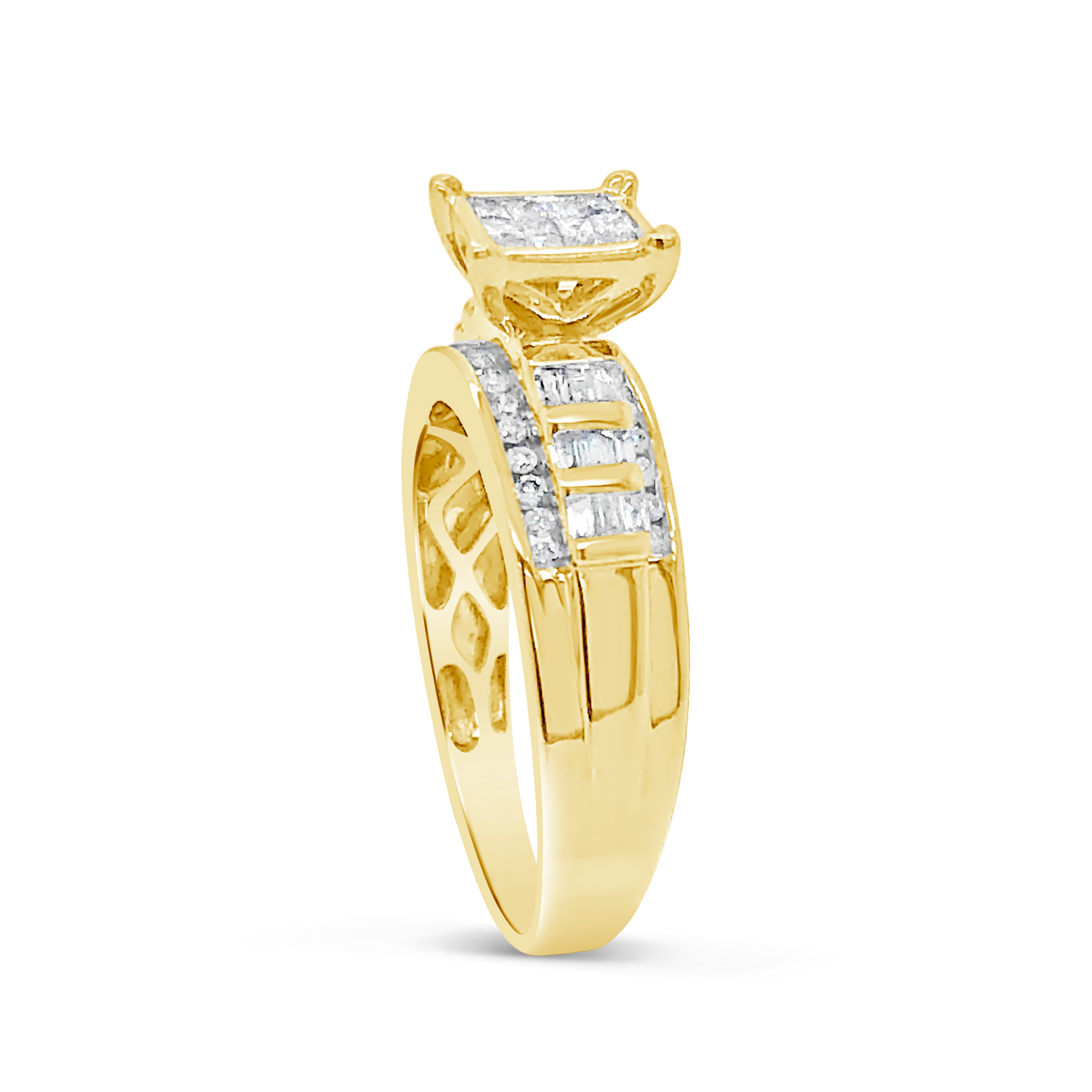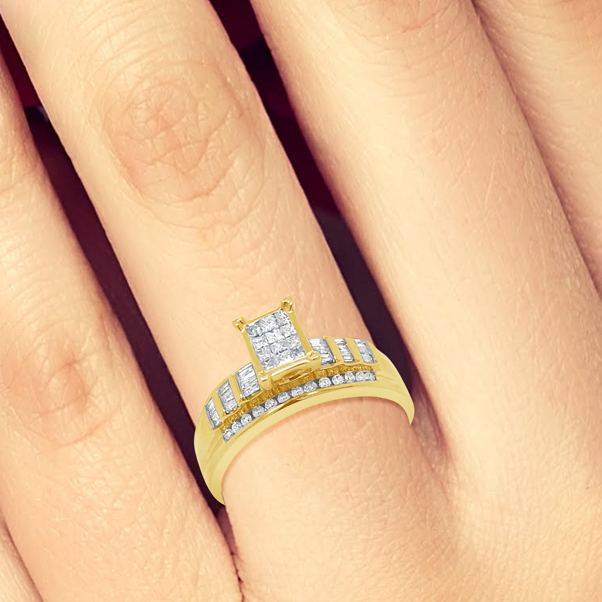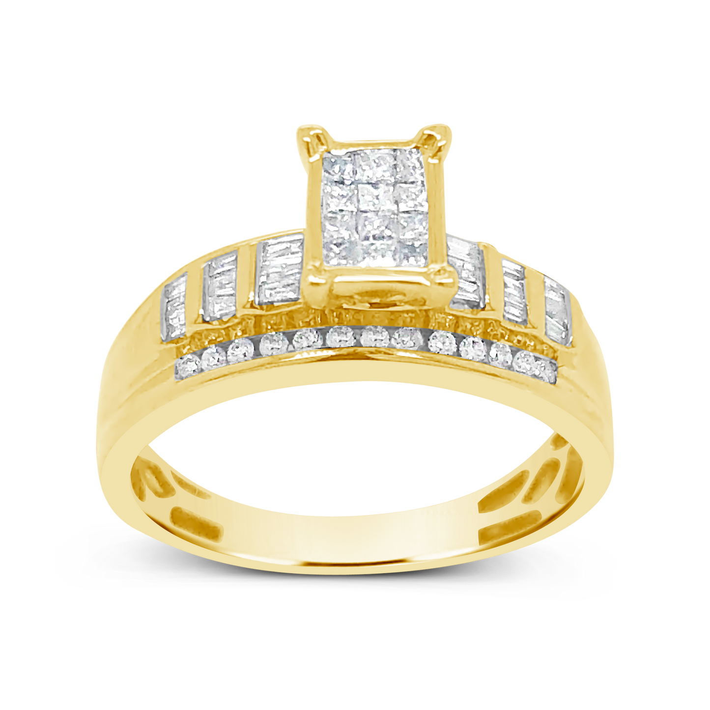 Diamond Engagement Ring .50 CTW Princess & Round Cut w/ Baguettes 10K Yellow Gold