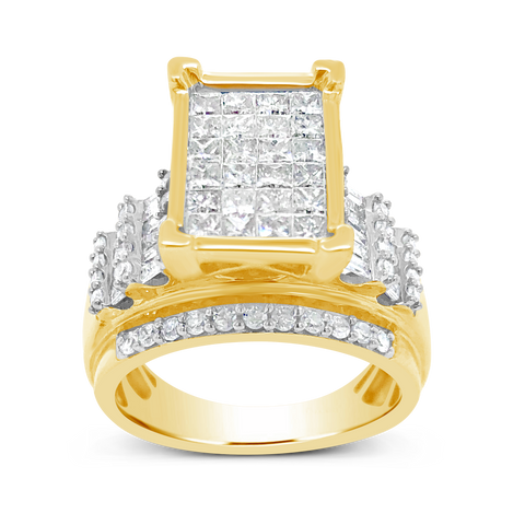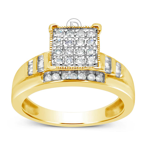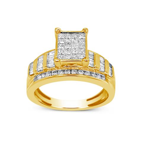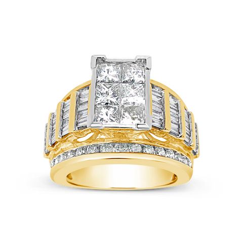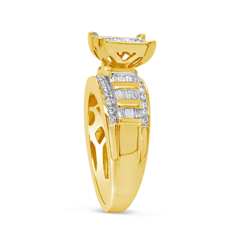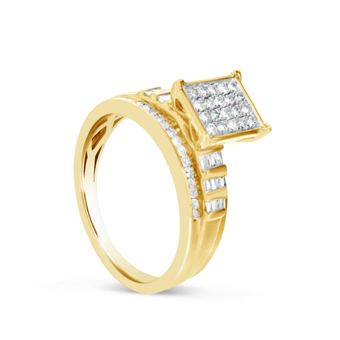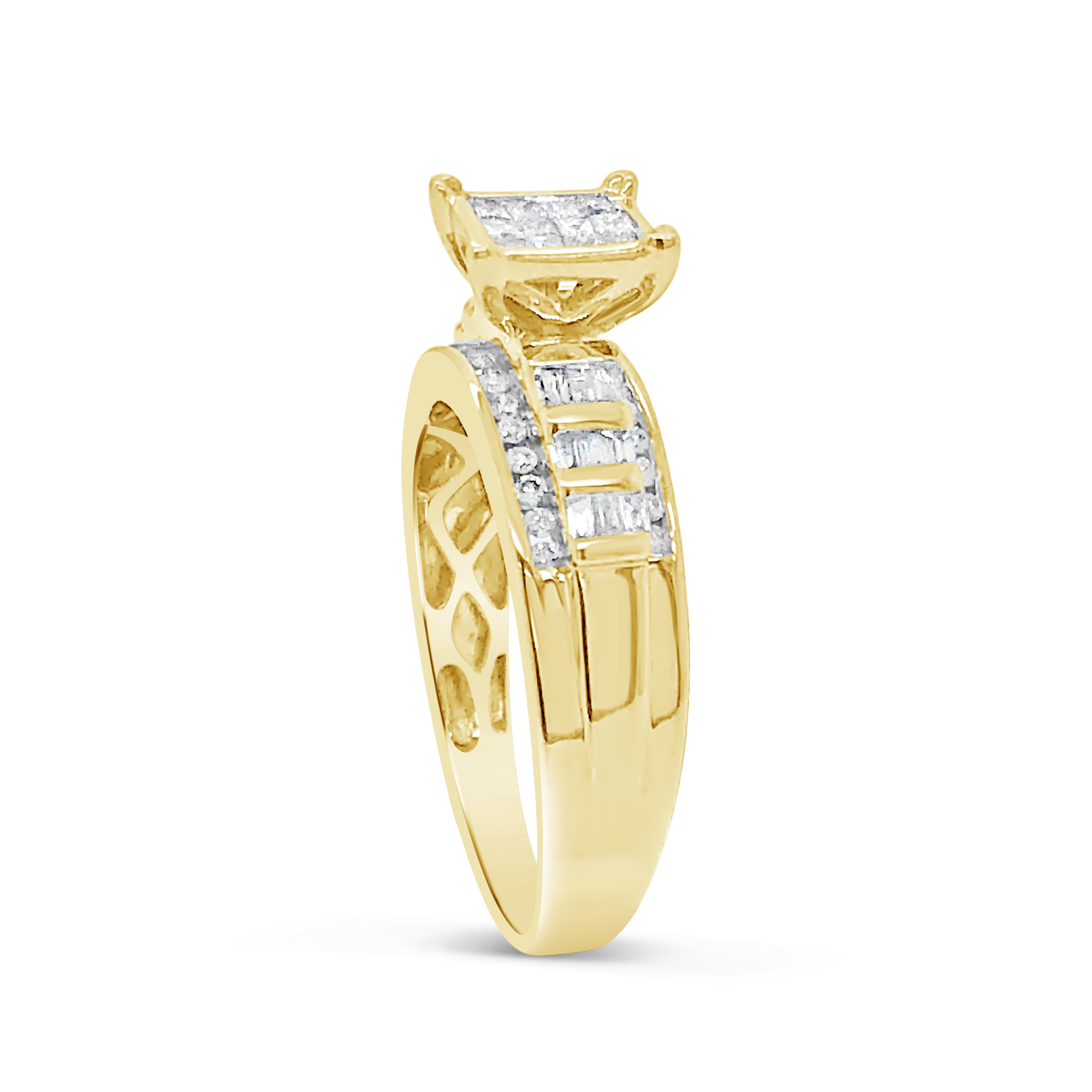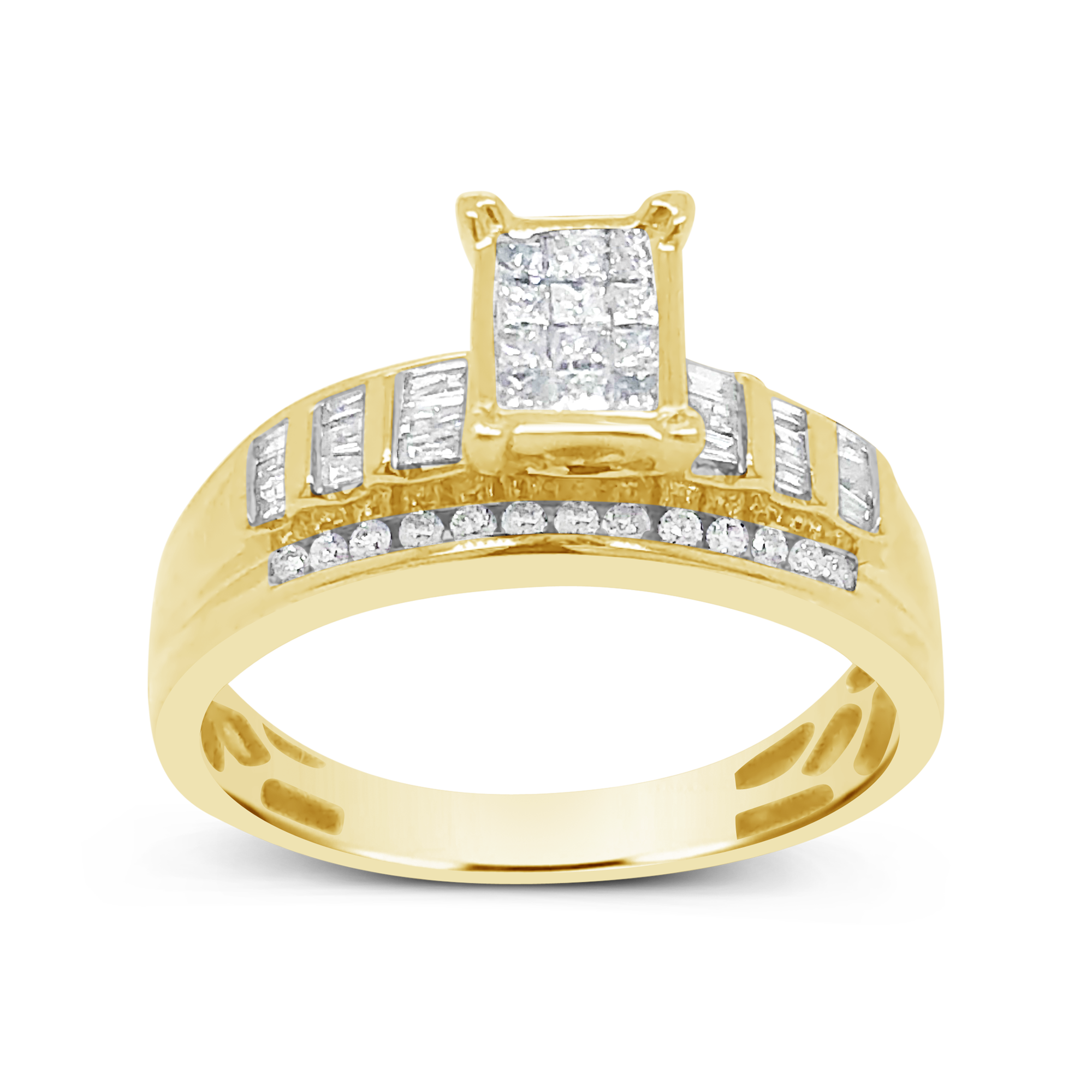 Diamond Engagement Ring .50 CTW Princess & Round Cut w/ Baguettes 10K Yellow Gold