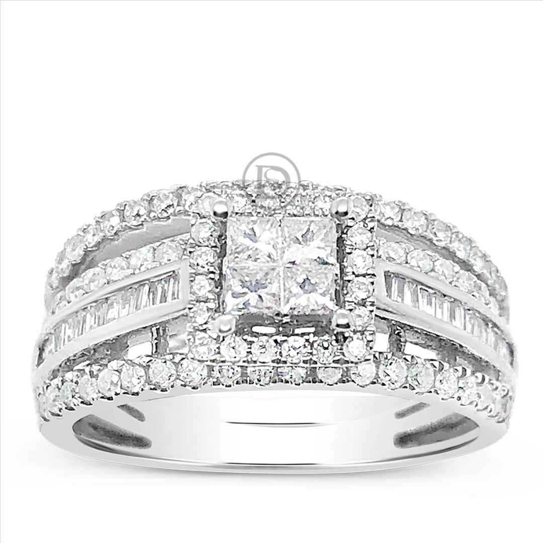 Diamond Halo Engagement Ring .95 CTW Princess w/ Round Cut & Baguettes 14K White Gold