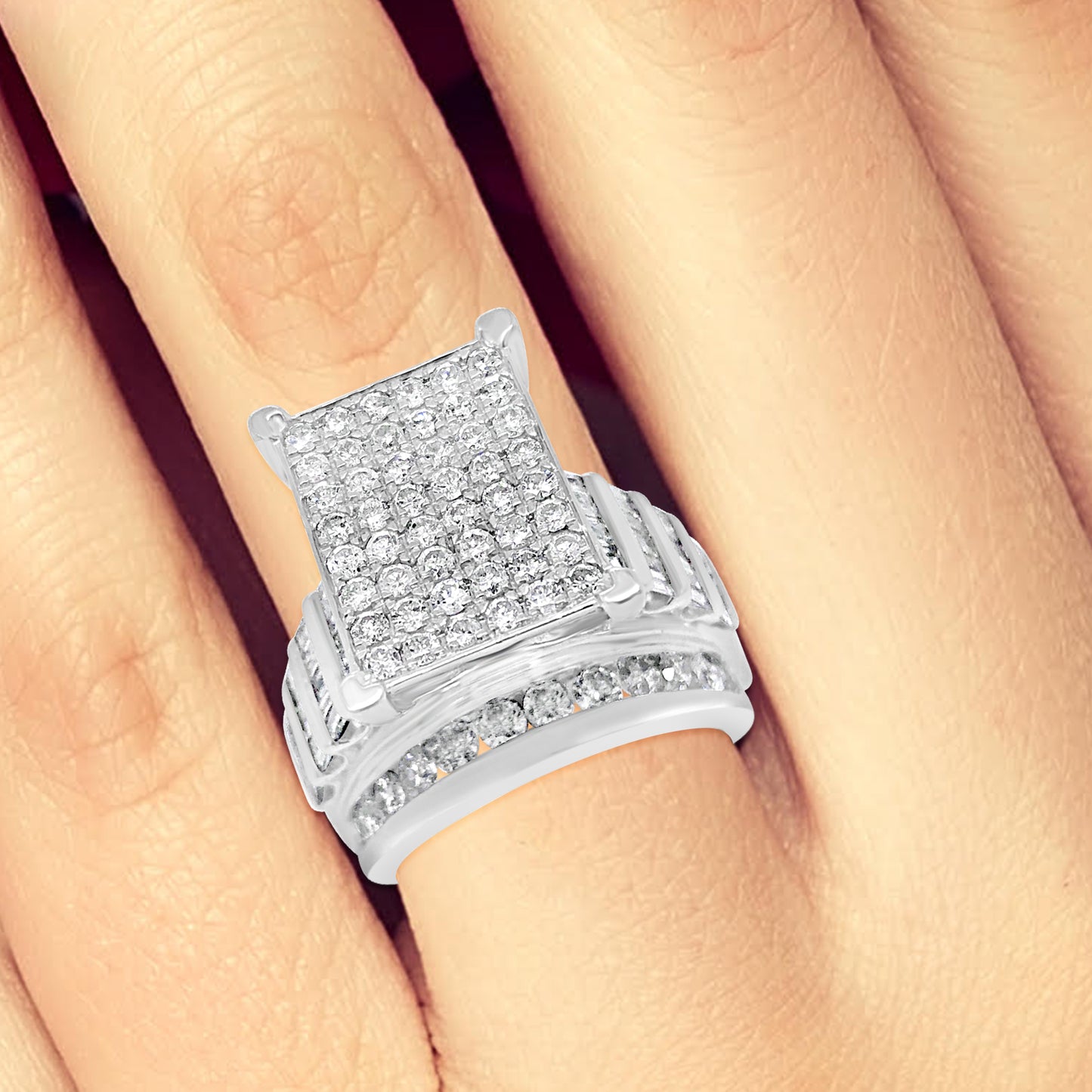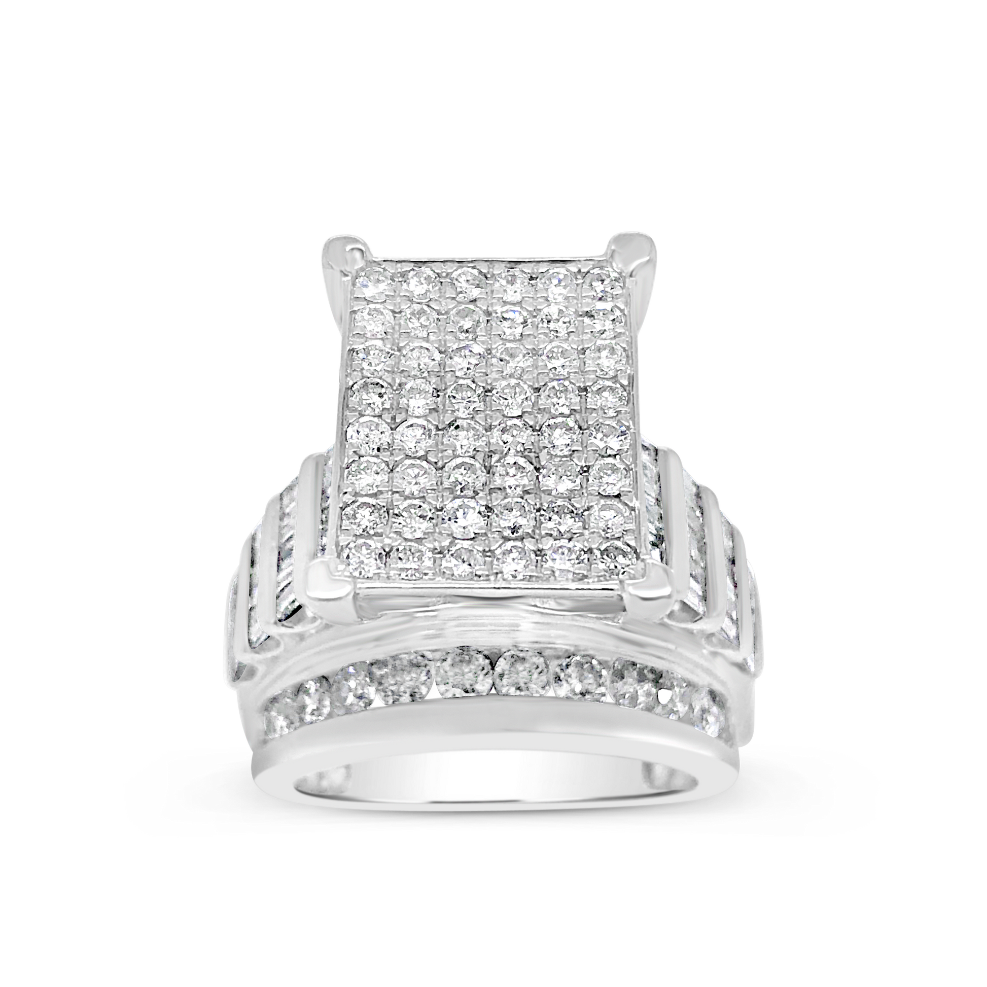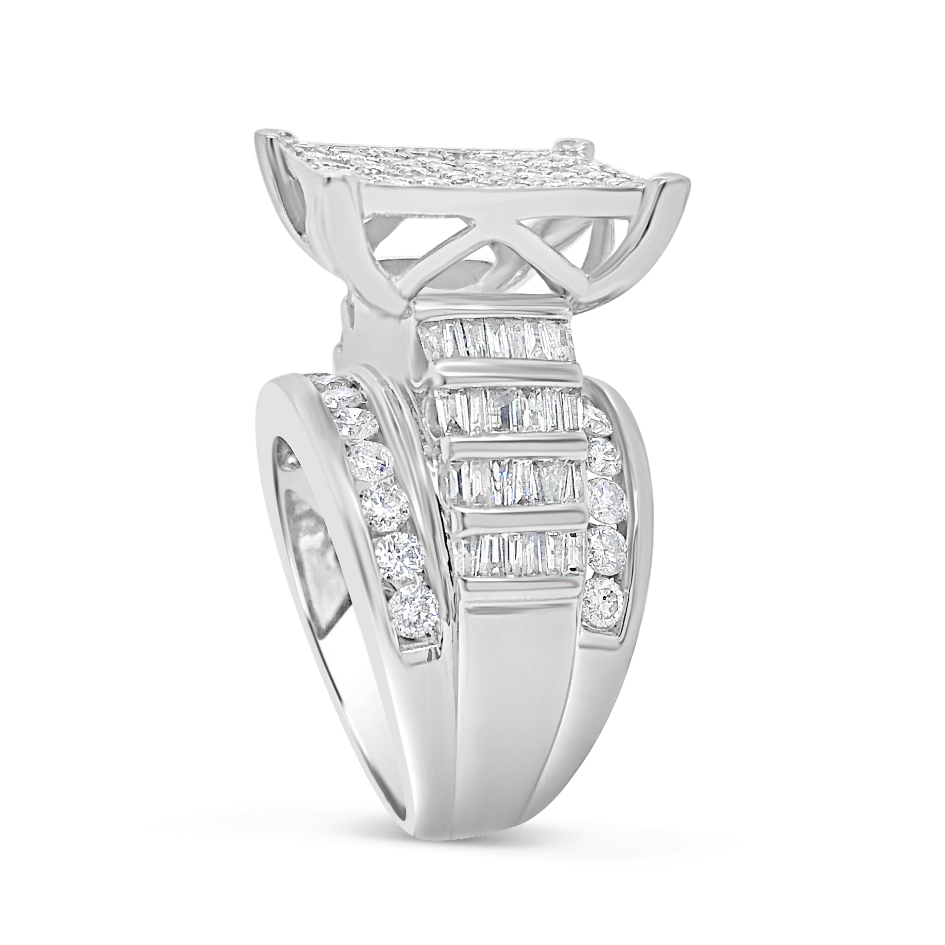 Our Diamond Ring is a glorious piece of jewelry, featuring breathtaking 4.05-carat total weight (CTW) Princess-Cut diamonds surrounded by Baguette and Round-Cut diamonds, all set in a sleek and modern 10K White Gold band. The Baguette and Round-Cut diamonds add a unique and distinctive touch to the design, with their exceptional quality and cut. The 10K White Gold band is modern and elegant, serving to highlight the beauty of the diamonds. Overall, this Diamond Ring is a true masterpiece, showcasing the timeless beauty and sophistication of diamonds, and sure to become a treasured piece in your jewelry collection.