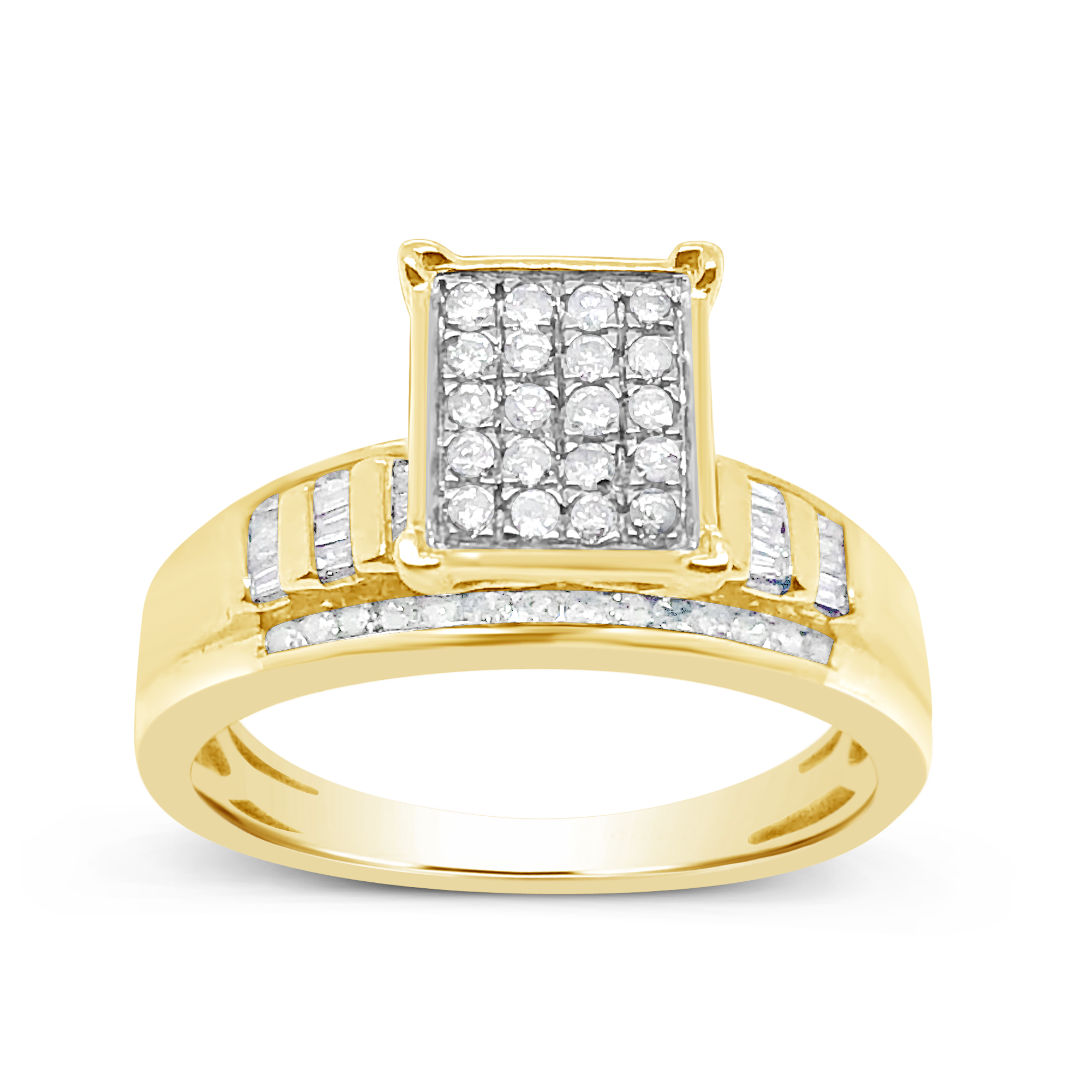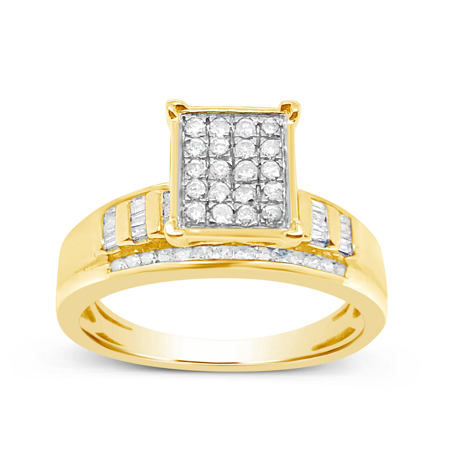 - Diamond ring .50 ctw round cut w/ baguettes 10k yellow gold