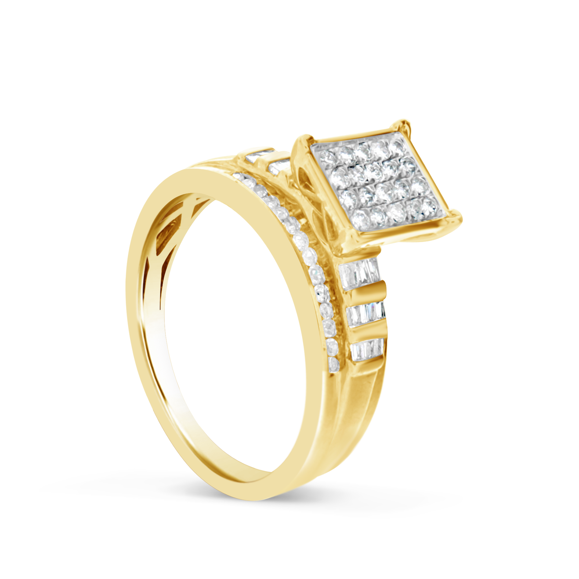 - Diamond engagement ring .50 ctw princess & round cut w/ baguettes 10k yellow gold
