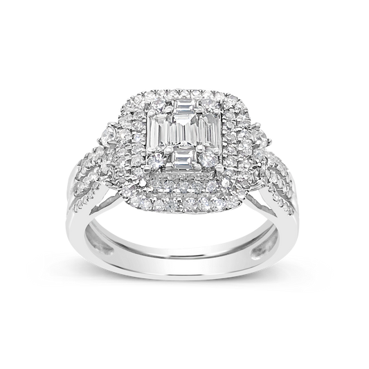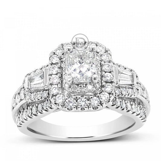 Diamond Halo Engagement Ring 1.03 CTW Princess Cut w/ Baguettes & Round Cut 14K White Gold