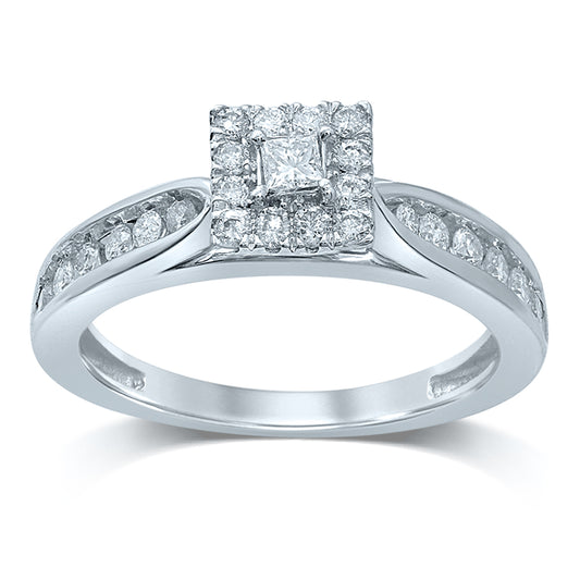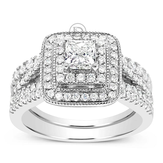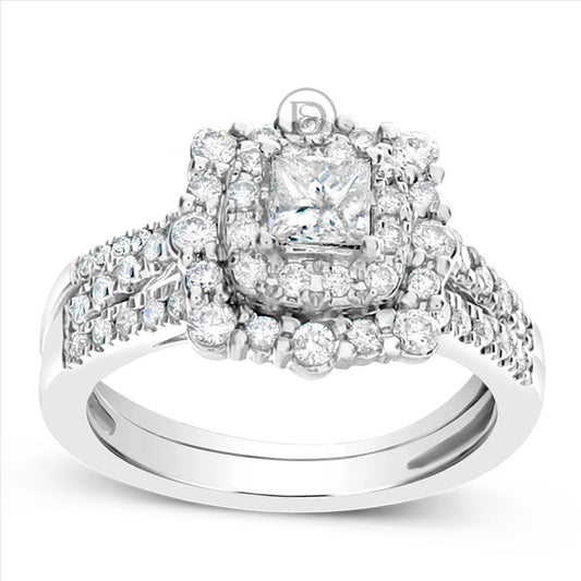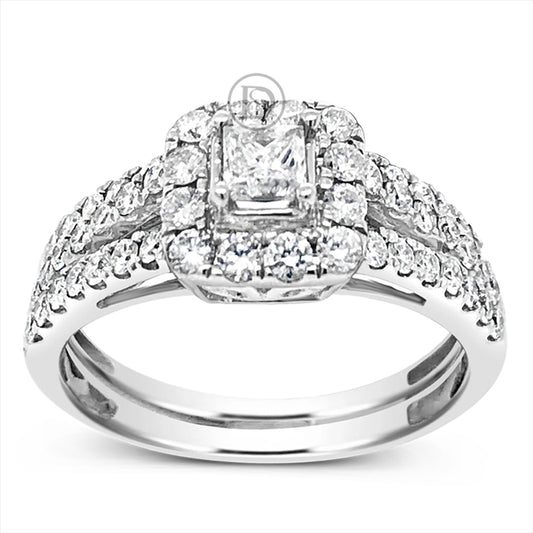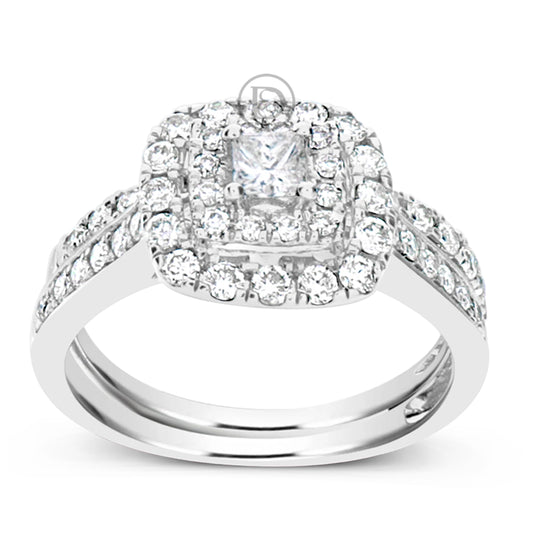 Diamond Halo Engagement Ring 1.03 CTW Princess w/ Round Cut 14K White Gold