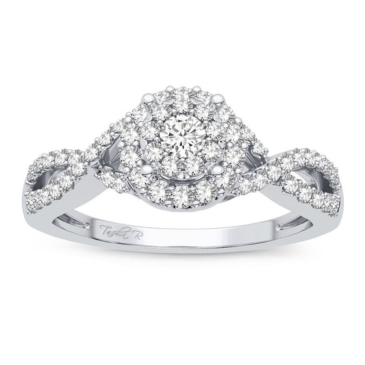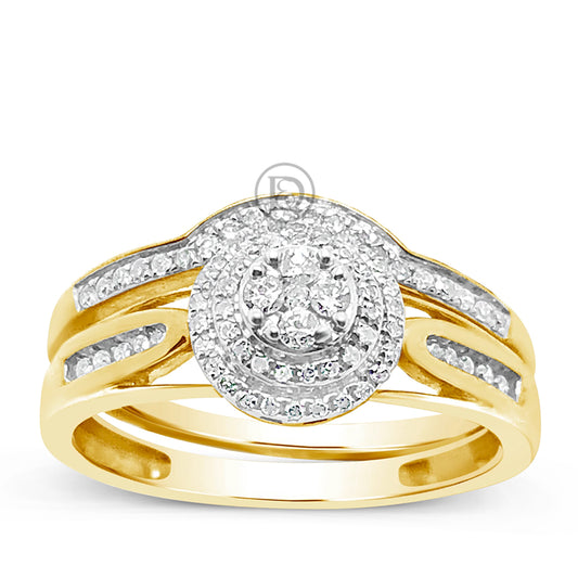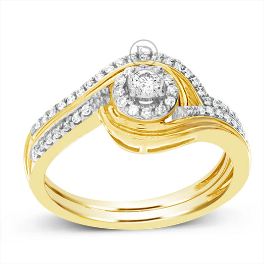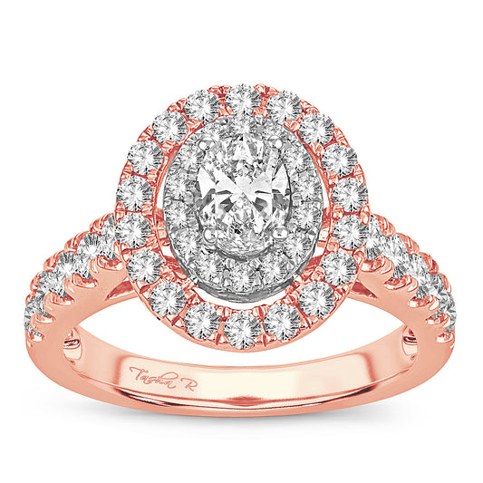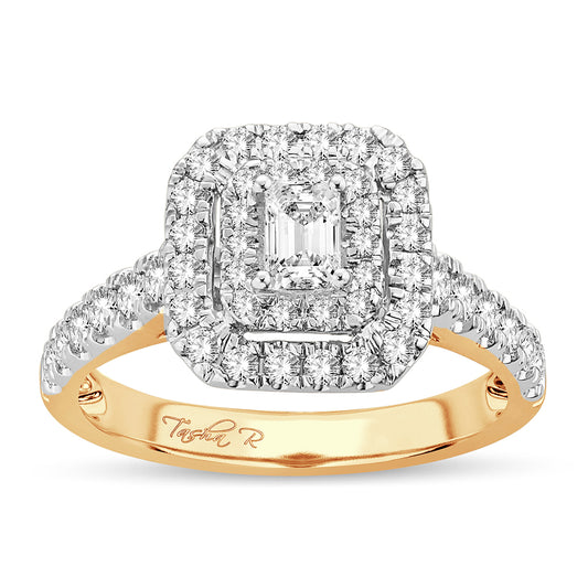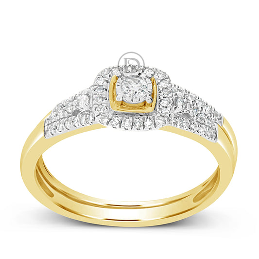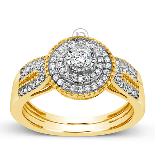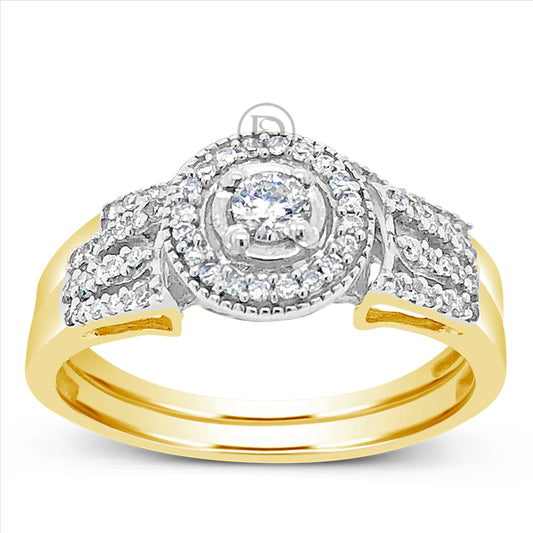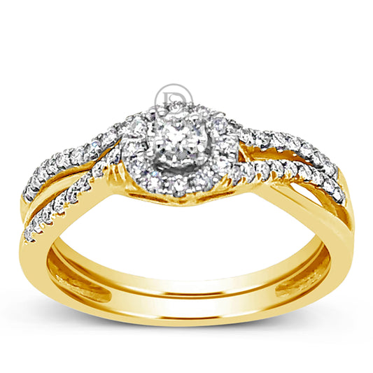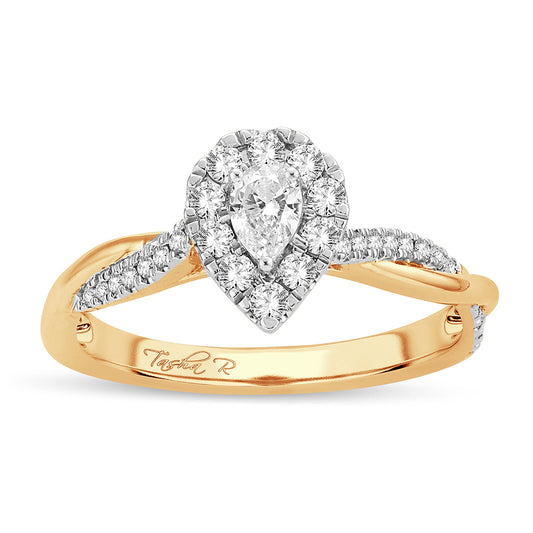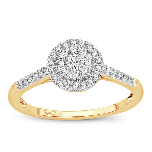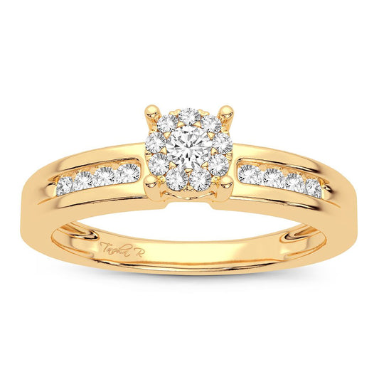• 14K Yellow Gold Diamond Halo Engagement Ring