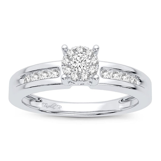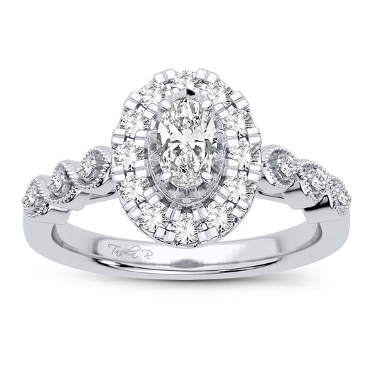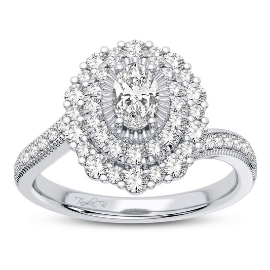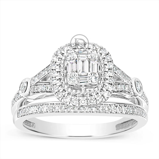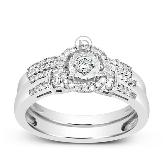 Diamond Halo Engagement Ring .65 CTW Round w/Baguette 14K white Gold
