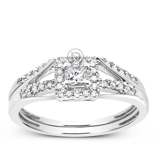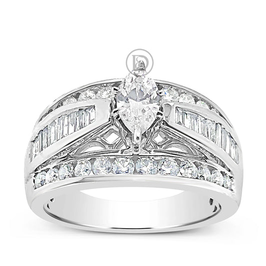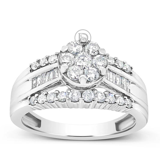 • 10K White Gold Baguettes Diamond Engagement Ring