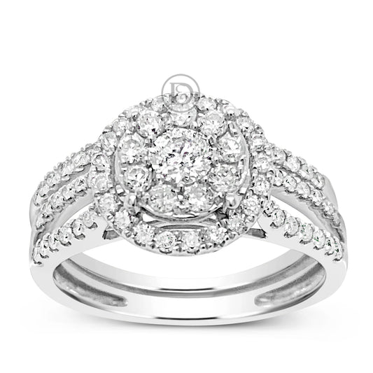 Diamond Halo Engagement Ring 1.06 CTW Round Cut 14K White Gold