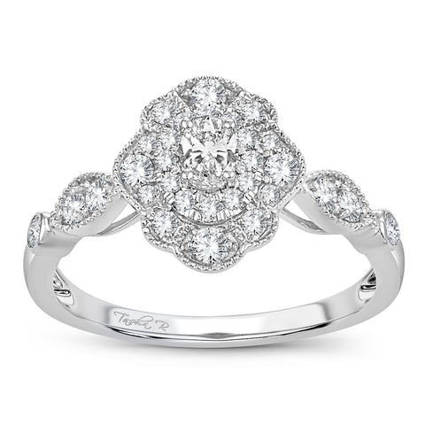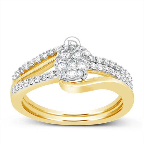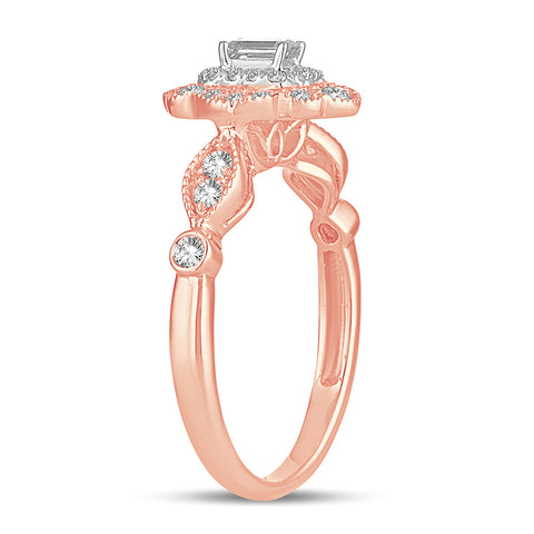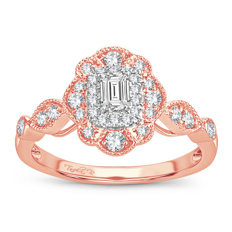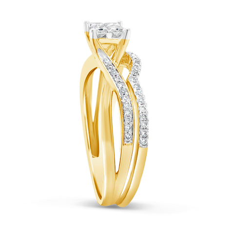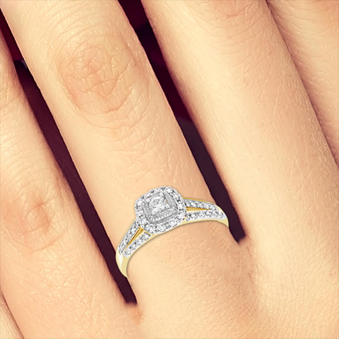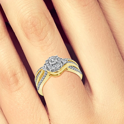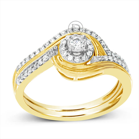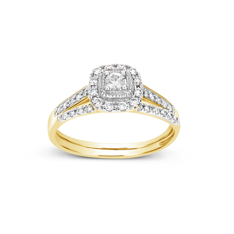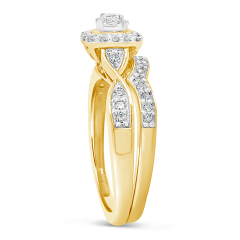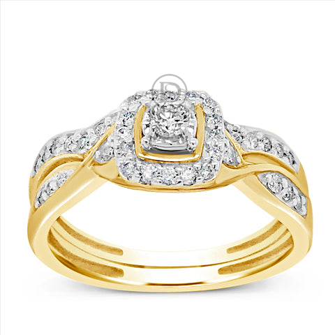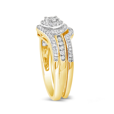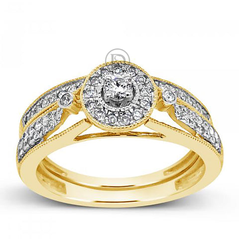 • 14K Yellow Gold Diamond Halo Engagement Ring