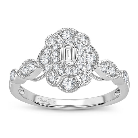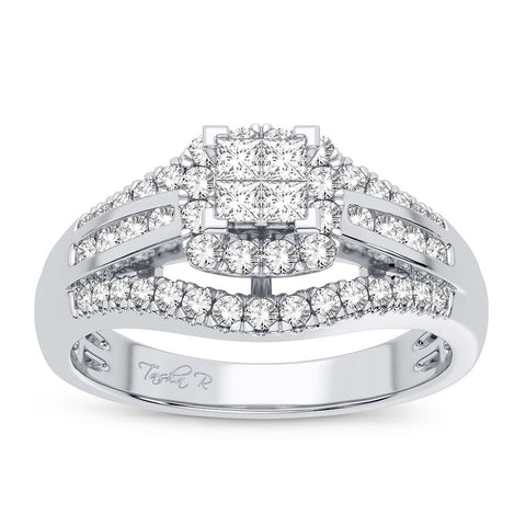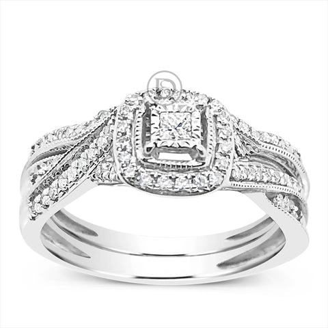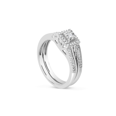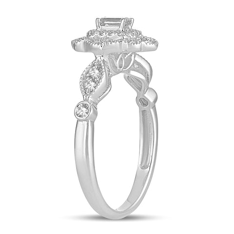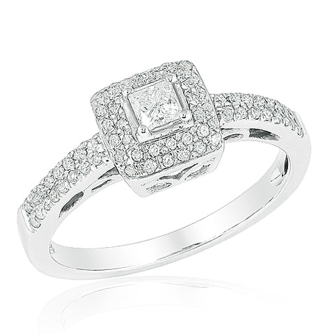 Diamond Engagement Ring .50 CTW Princess Cut w/ Round Cut 10K White Gold