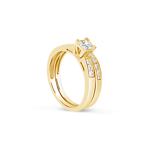 • Diamond Engagement Ring 1 CTW Princess & Round Cut 14K Yellow Gold Diamond Engagement Ring 1 CTW Princess & Round Cut 14K Yellow Gold