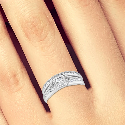 • Diamond Engagement Ring .50 CTW Princess Cut w/ Round Cut 10K White Gold Diamond Engagement Ring .50 CTW Princess Cut w/ Round Cut 10K White Gold