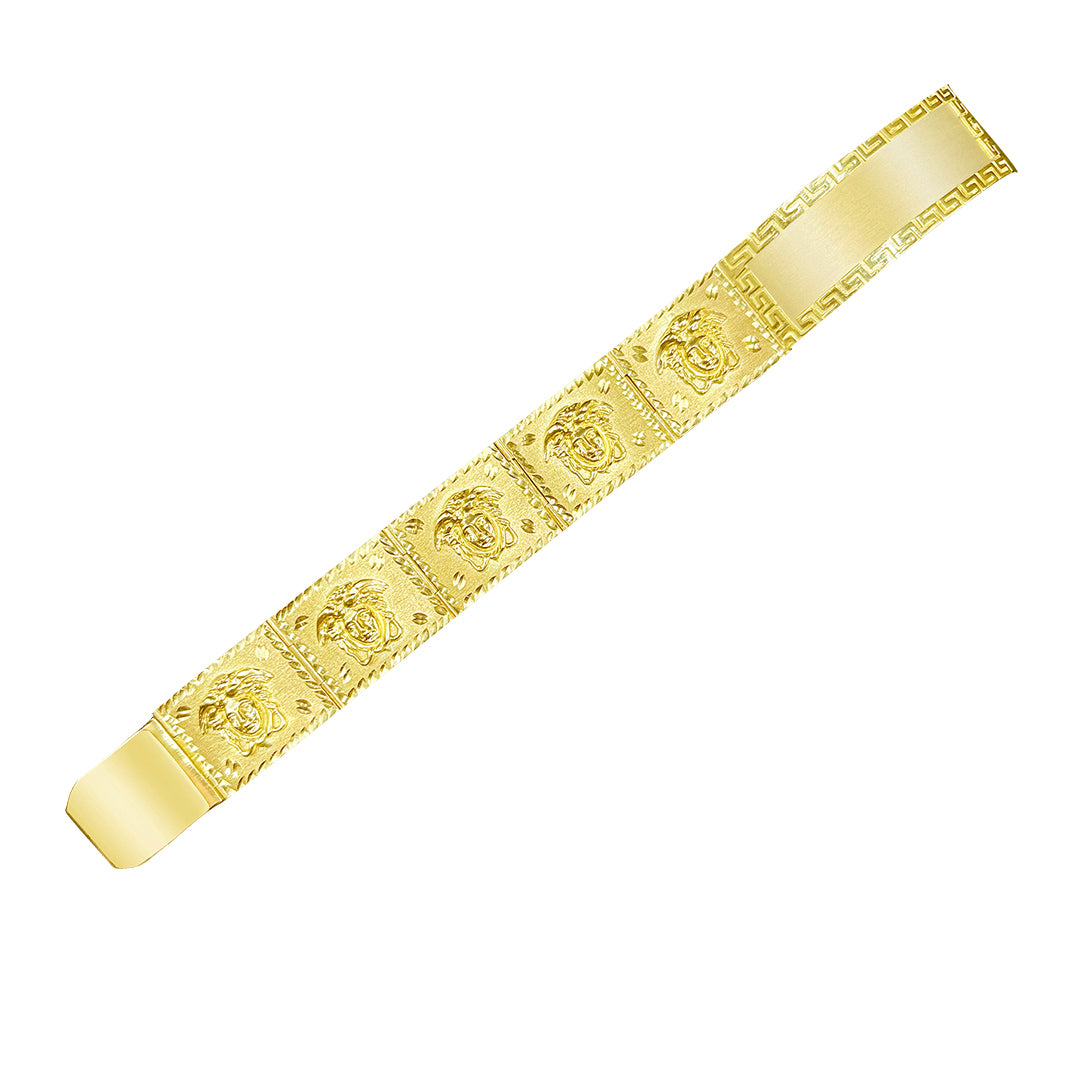 10K yellow gold ID bracelet with Medusa and Greek Key