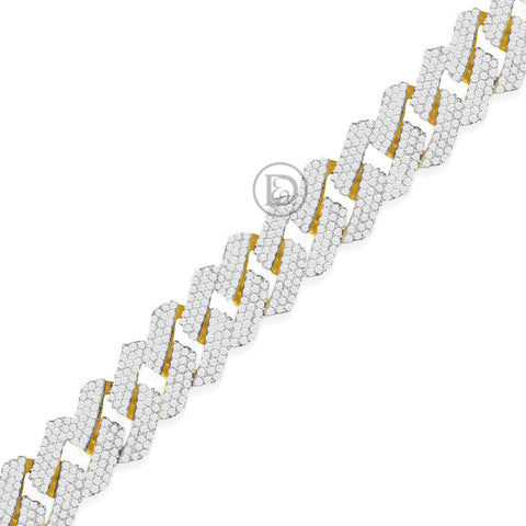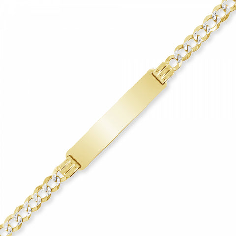 10K Yellow Gold Solid Pave Two-Tone Cuban Link ID Bracelet