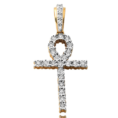 10KY 0.20CTW DIAMOND ANKH CROSS PENDANT WITH GOLD