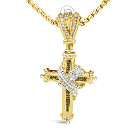 10K Yellow Gold Cross Pendant With 3.15CT Diamonds