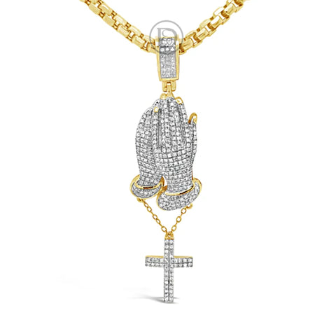 Diamond Praying Hands Pendant .89 CTW Round Cut 10K Yellow Gold