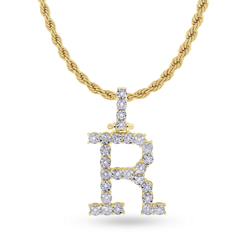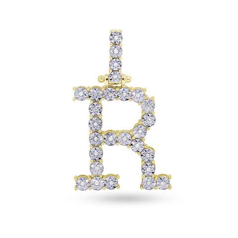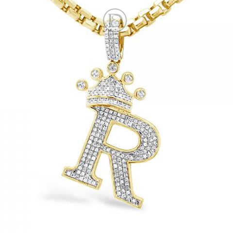 Diamond "Crown R" Pendant .65 CTW Round Cut 10K Yellow Gold