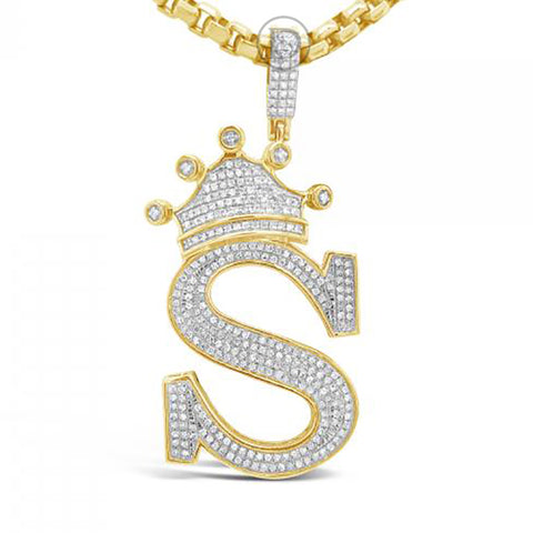 Diamond "Crown S" Pendant 1 CTW Round Cut 10K Yellow Gold