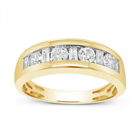 MEN'S BANDS 5 CT ROUND/BAGUETTE DIAMOND 14K YELLOW GOLD