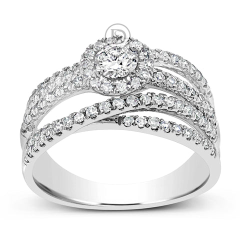 Diamond Halo Engagement Ring 1 CTW Round Cut 14K White Gold