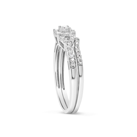 • Diamond halo engagement ring .32 ctw round cut 10k white gold
