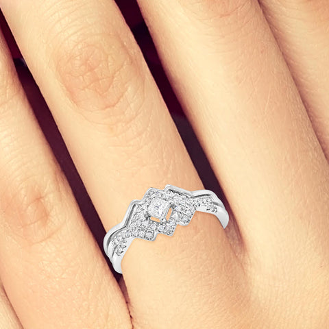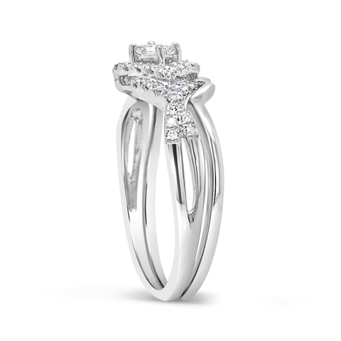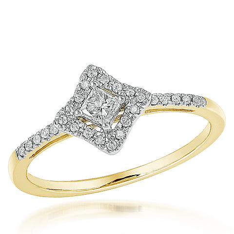 • Diamond halo engagement ring .23 ctw princess cut center w/ round cut 10k white gold