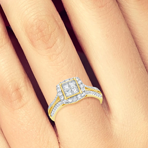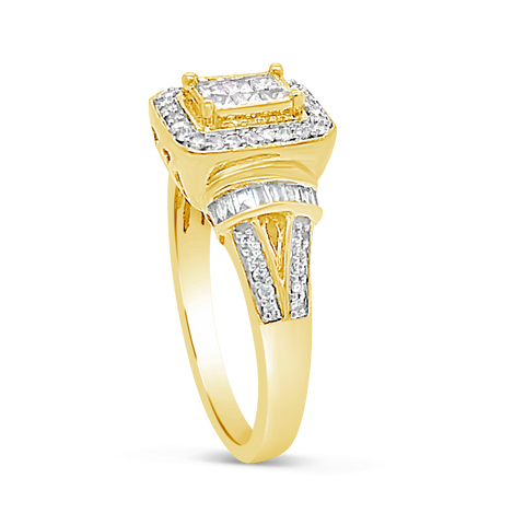 Diamond Engagement Ring 1 CTW Princess & Round Cut 14K Yellow Gold