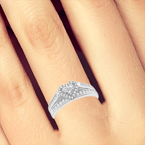 • Heart shaped diamond ring .10 ctw round cut 10k white gold