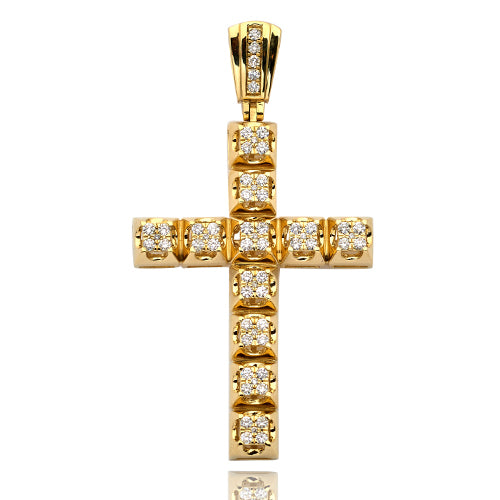 14KY 1.50CTW FLEUR DIAMOND CROSS PENDANT