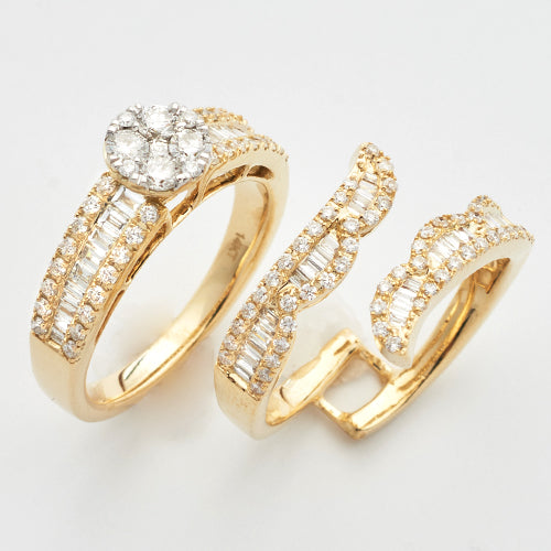 Diamond Ring 1.03 CTW Round w/ Baguettes 14K Yellow Gold