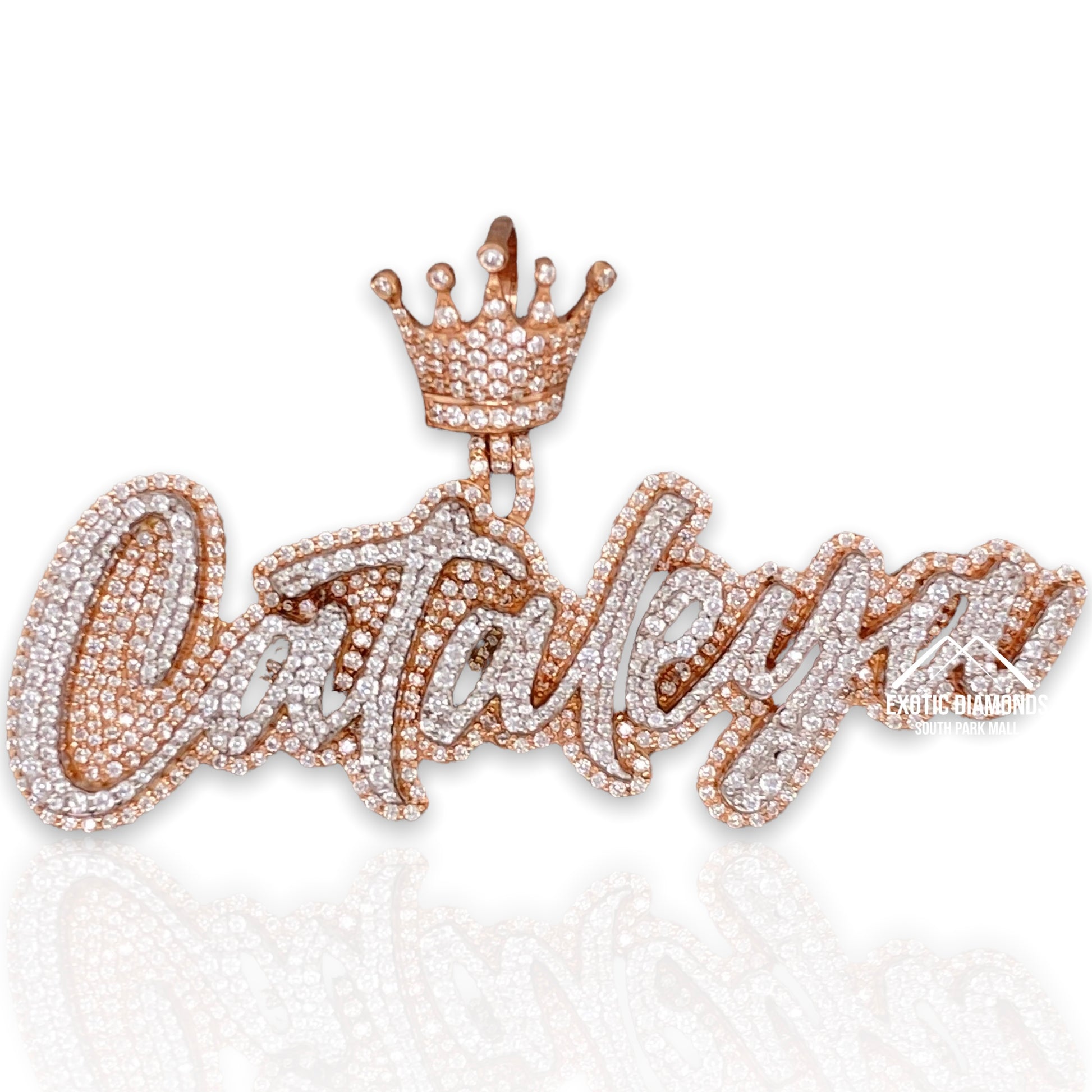 Indulge in luxury and elegance with the 10K Rose Gold Personalized Diamond Name Plate Pendant. This stunning pendant is adorned with top-quality diamonds, and expertly set in a beautiful rose gold pendant, creating a unique and eye-catching design that is sure to turn heads. Personalize the pendant with your name or the name of someone special, creating a one-of-a-kind piece that is both beautiful and meaningful. Whether you're looking for a personalized gift for someone special or simply want to treat yourself to a stunning piece of jewelry, the 10K Rose Gold Personalized Diamond Name Plate Pendant from Exotic Diamonds is a perfect choice.