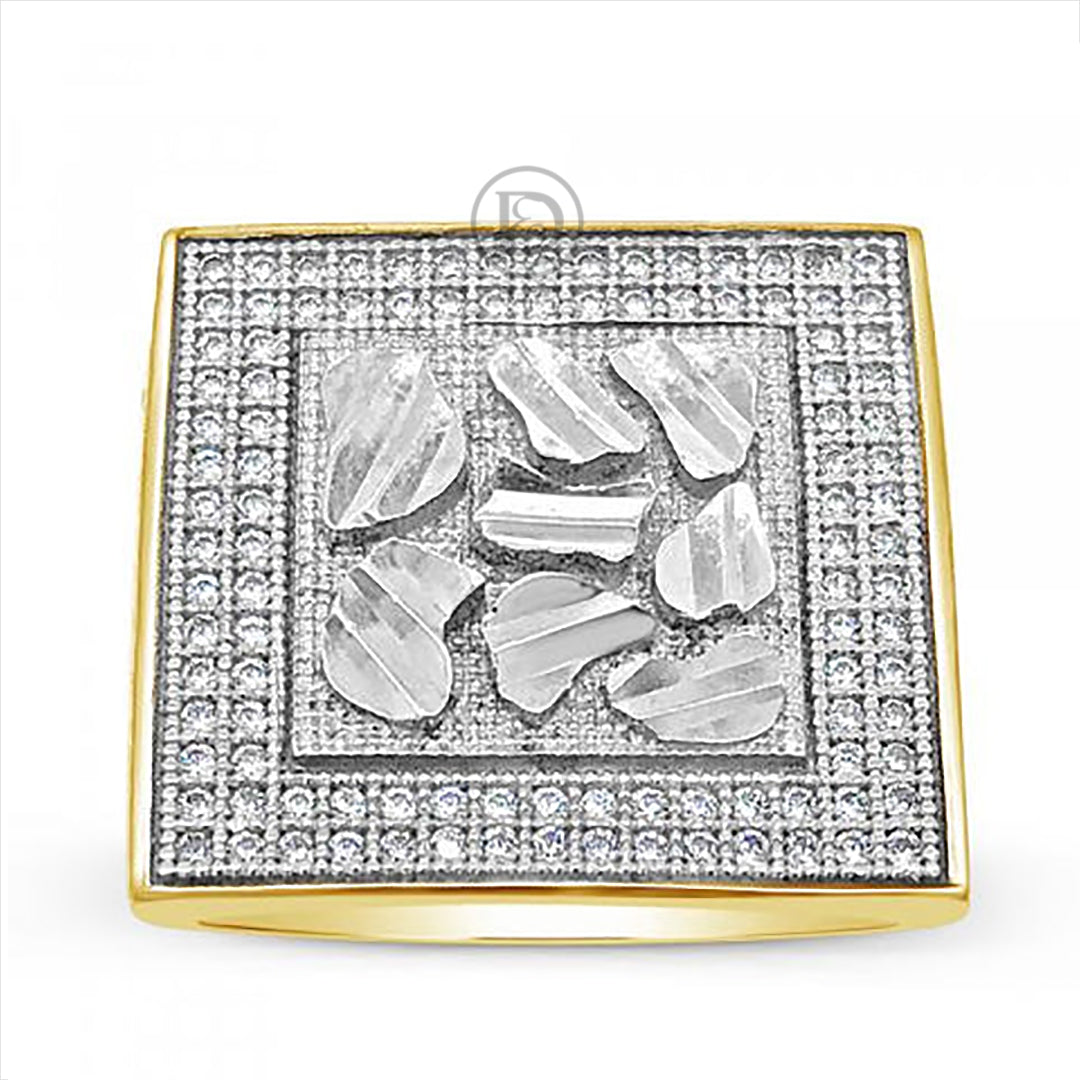 10K Yellow Gold Men's Gold Nugget Ring w/ CZ's