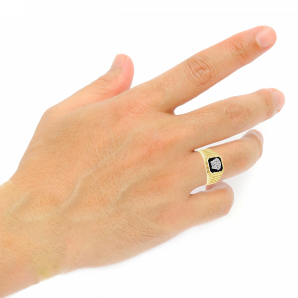 10K Yellow Gold Men's Medusa w/ Black Onyx Ring