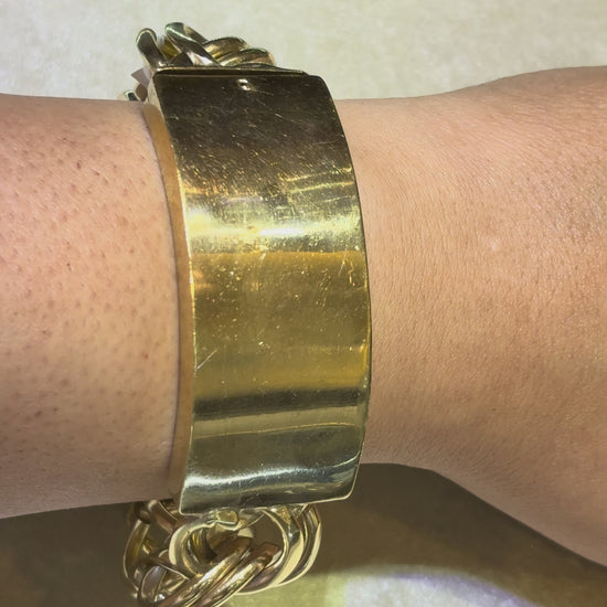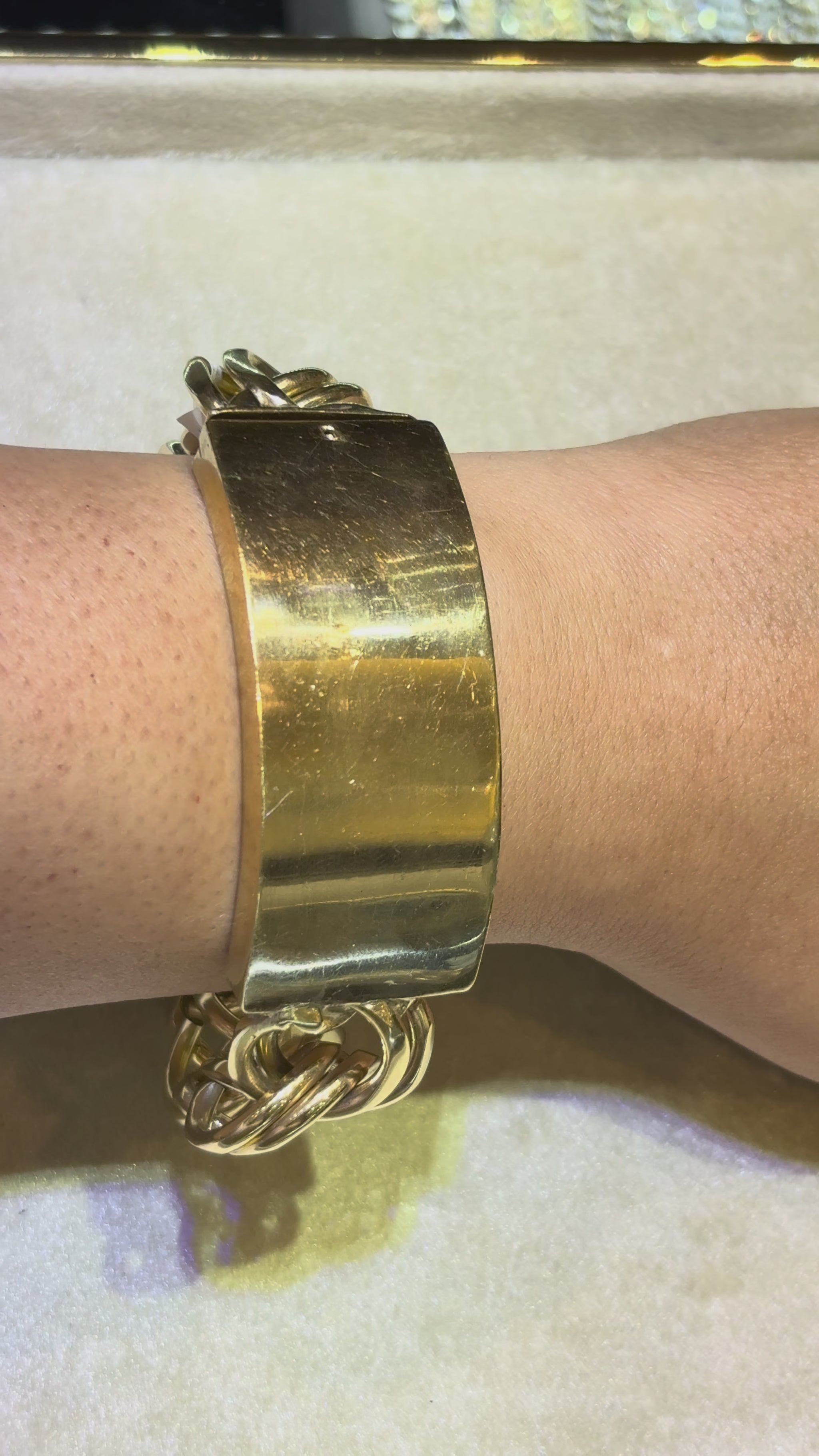 10K 23MM GOLD CHINO BRACELET WITH A BOLD HIGH POLISH ID PLATE. A STYLISH AND TIMELESS GOLD BRACELET FOR EVERYDAY WEAR OR SPECIAL OCCASIONS.