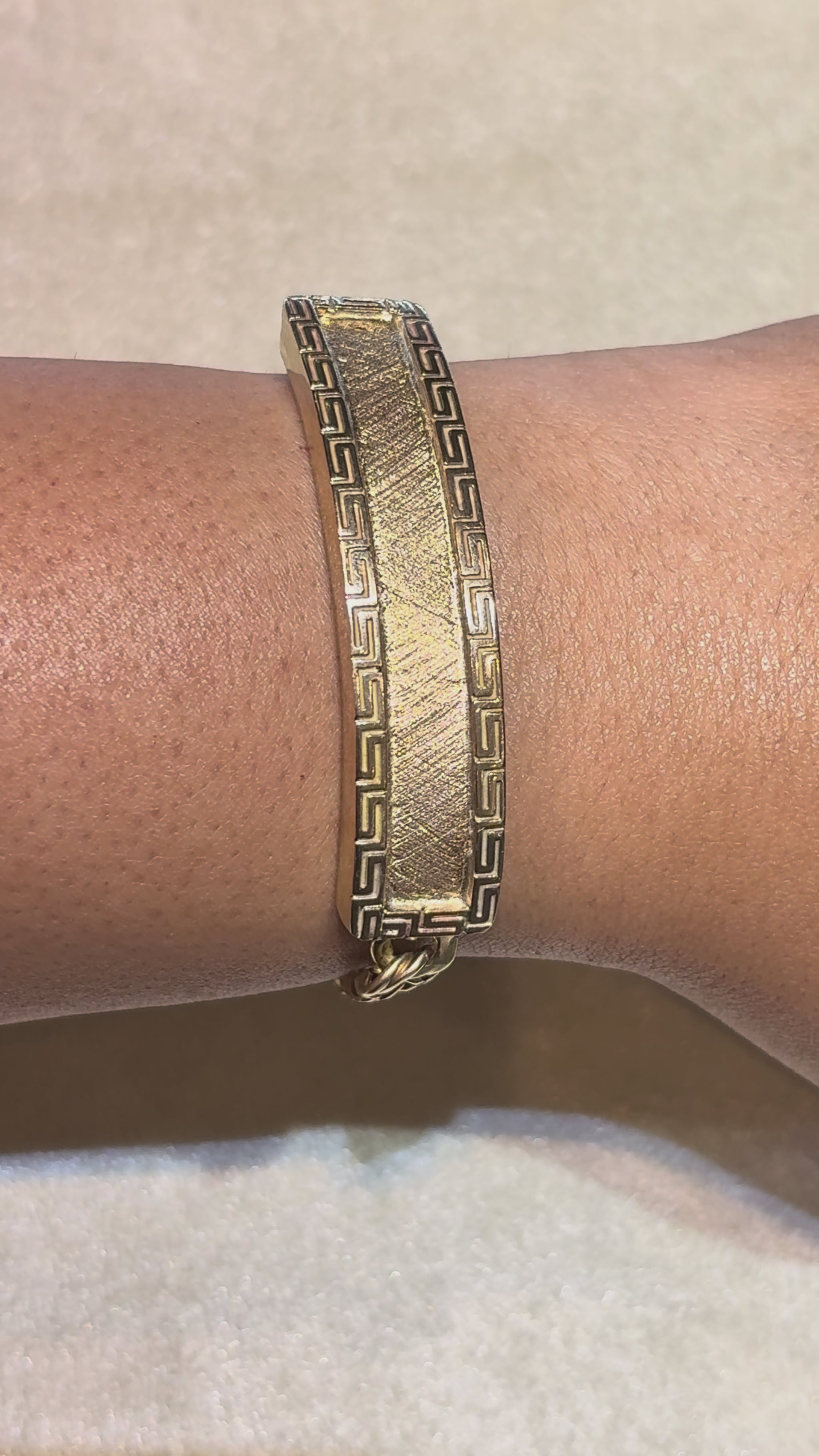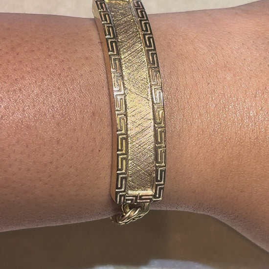 CHINO LINK BRACELET WITH GREEK KEY BORDER ON PLATE 26.90 GM
