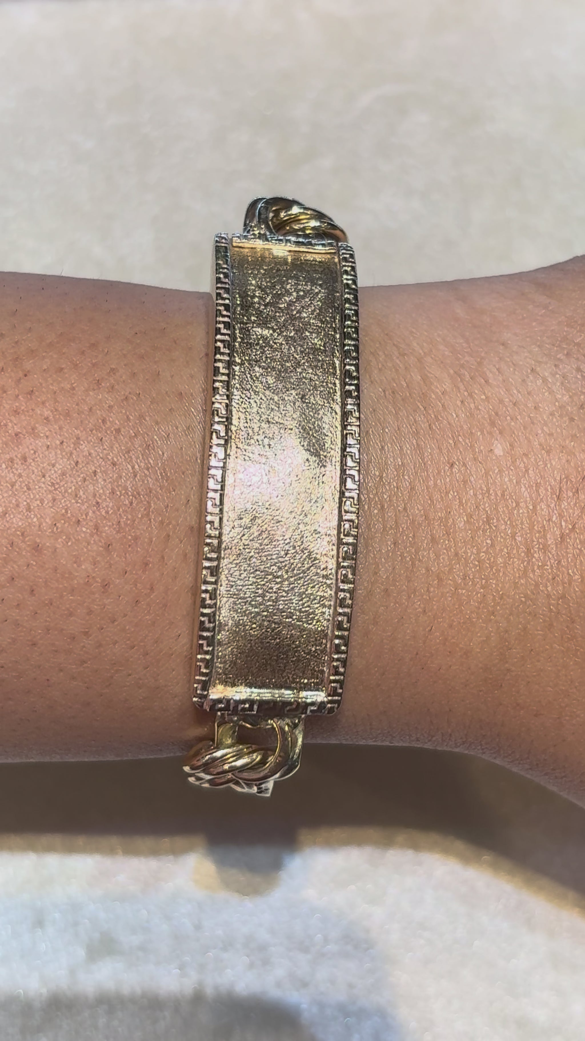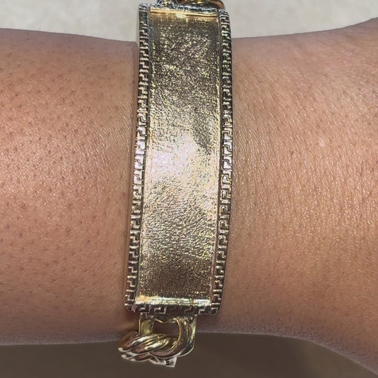 CHINO LINK BRACELET WITH GREEK KEY BORDER ON PLATE 60.00 GM