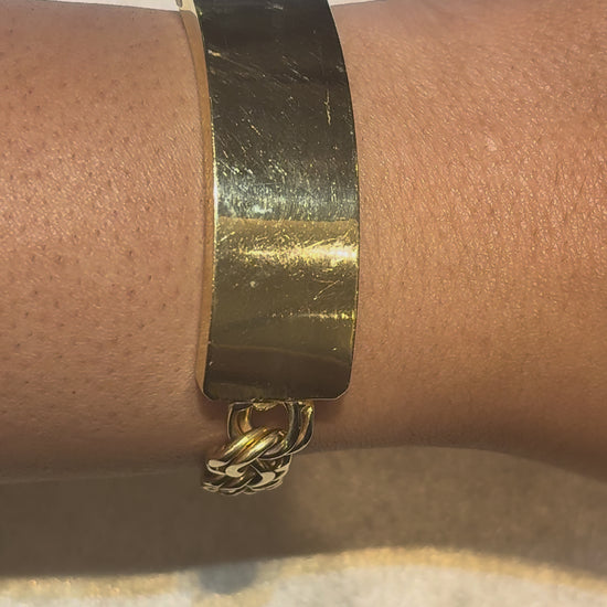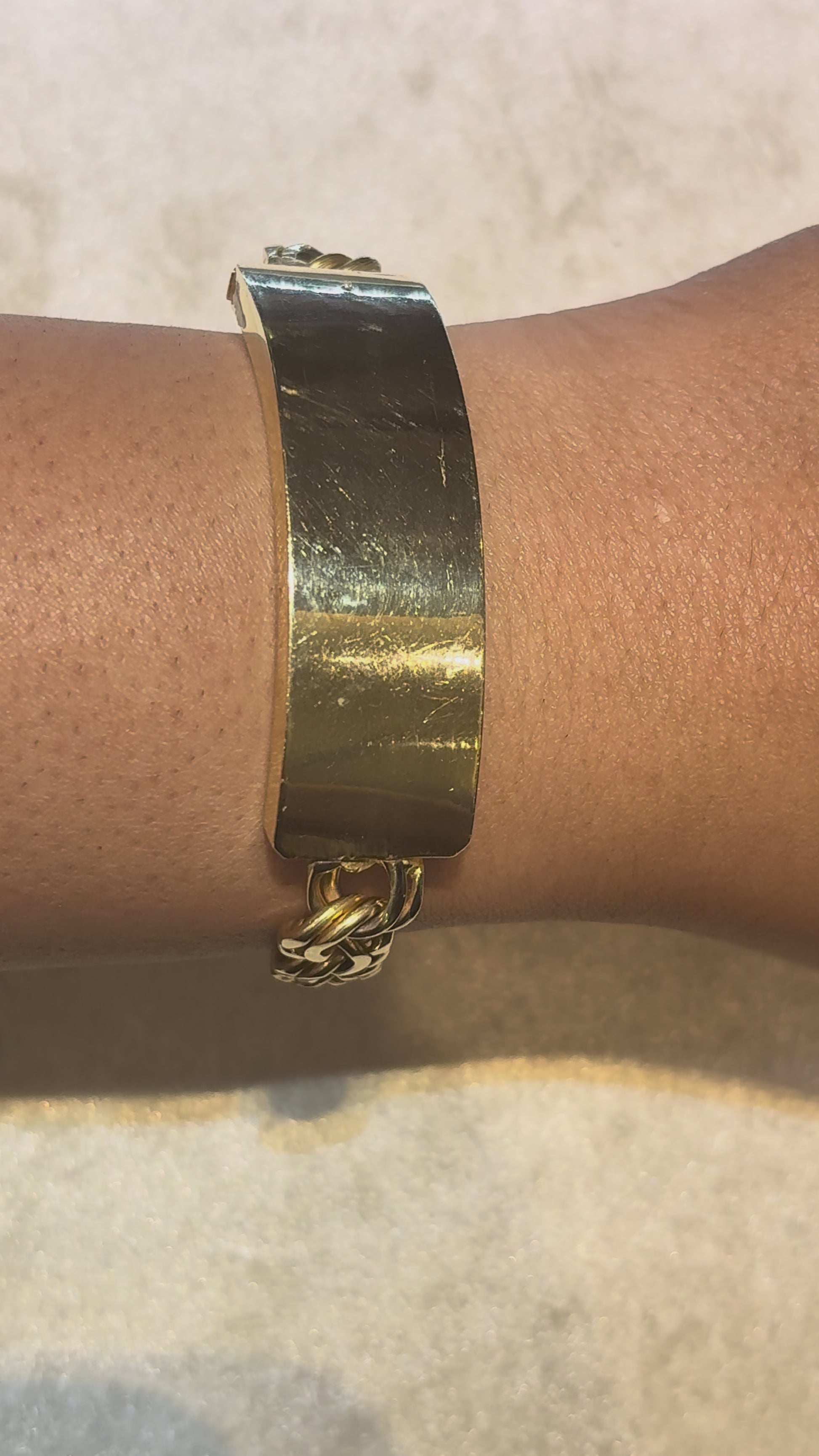 10K 9MM GOLD CLOSED TIGHT CHINO LINK BRACELET FEATURING A HIGH POLISH FINISHED ID PLATE. A STYLISH AND TIMELESS GOLD BRACELET FOR EVERYDAY WEAR OR SPECIAL OCCASIONS.