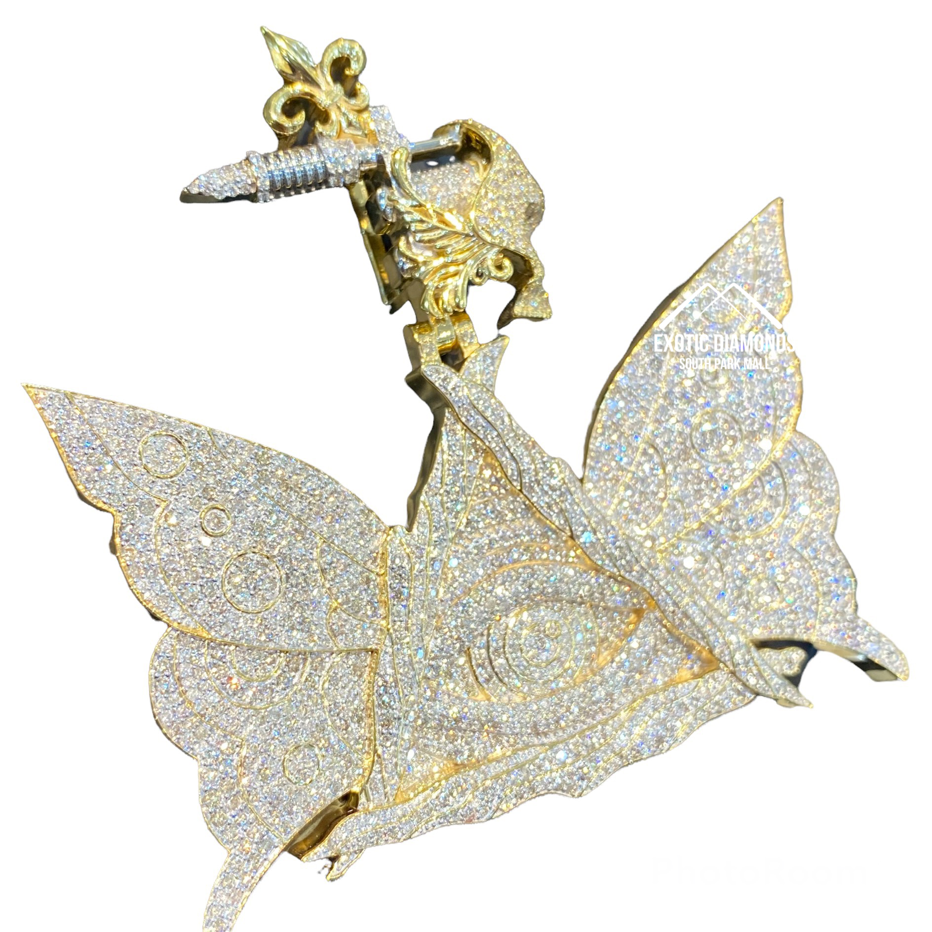Custom made logo pendant for customer Full Diamonds Butterfly with Tattoo Gun