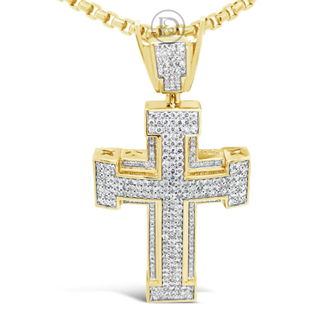 Diamond Cross Pendant 3.85 CTW Round Cut 10K Yellow Gold