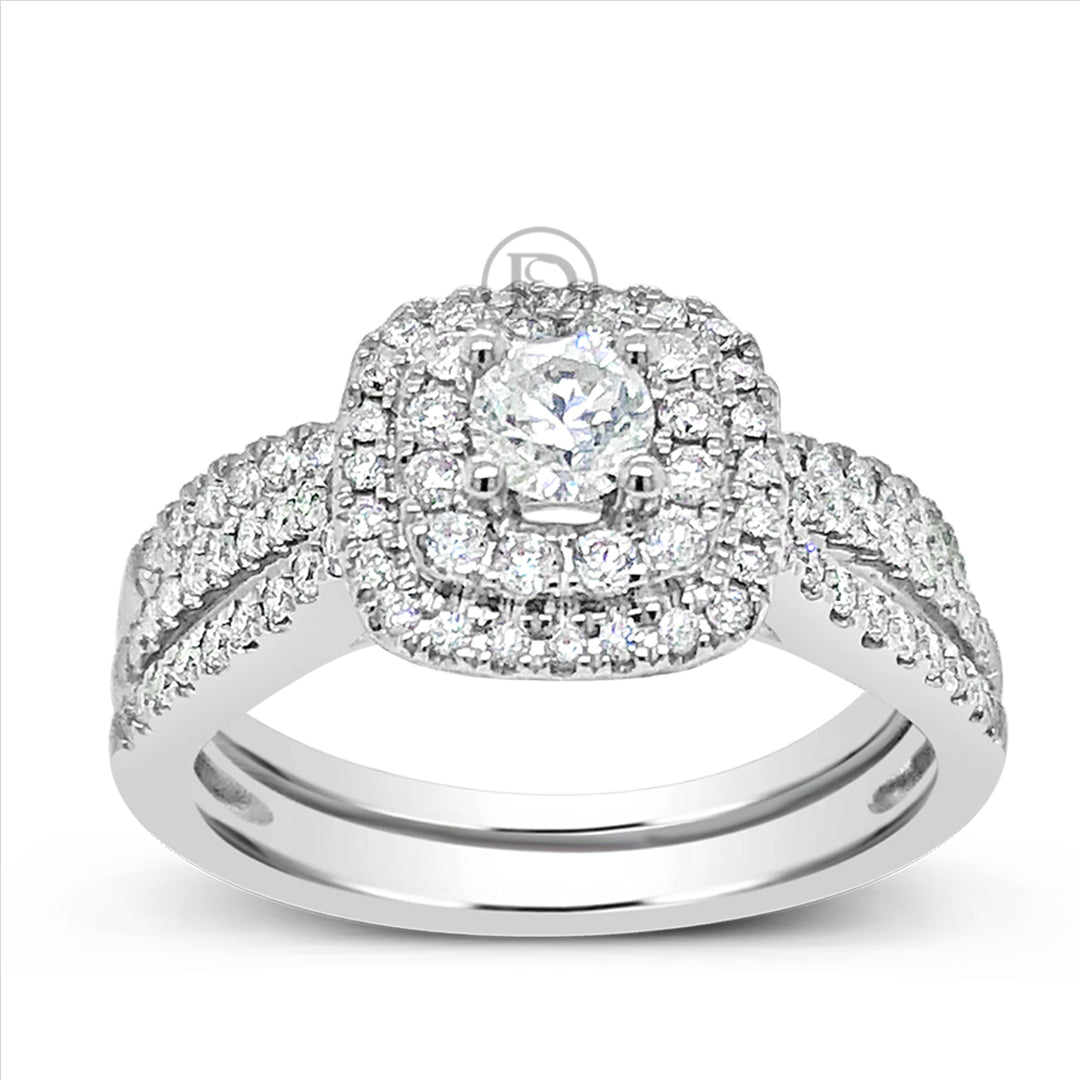 Diamond Halo Engagement Ring 1.01 CTW Round Cut 14K White Gold