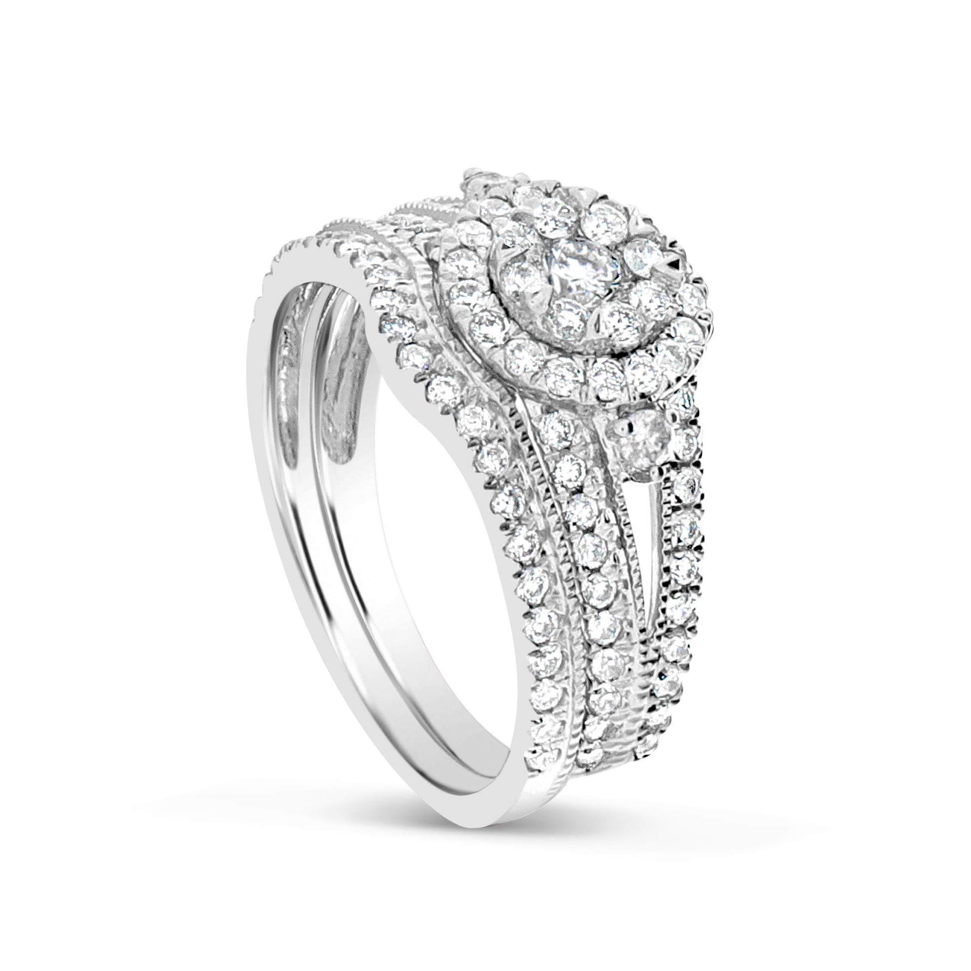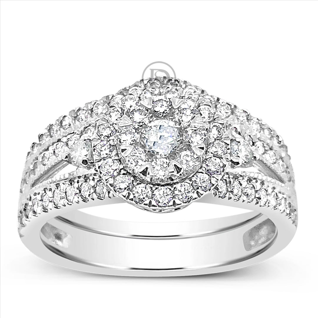 Diamond Halo Engagement Ring 1.06 CTW Round Cut 14K White Gold