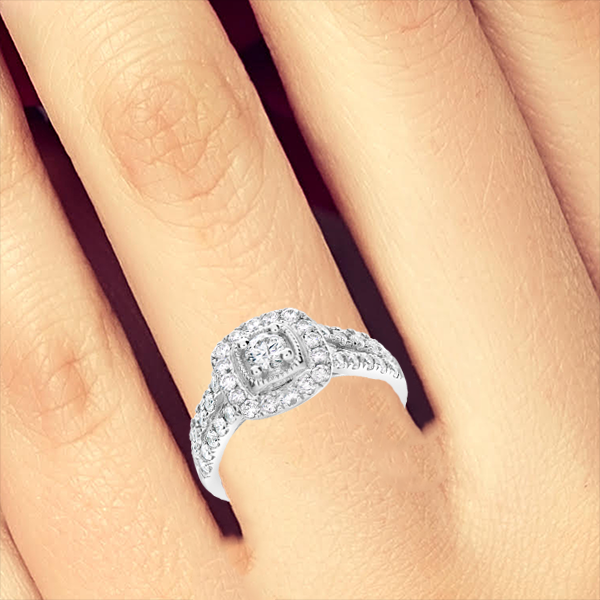 Diamond Halo Engagement Ring 1.20 CTW Round Cut 14K White Gold