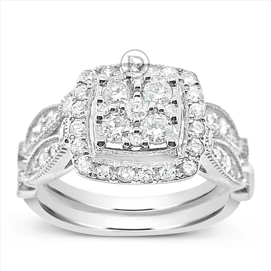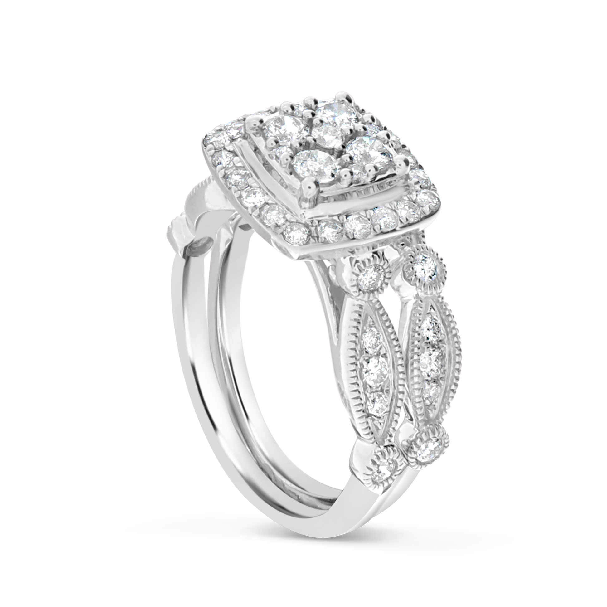 Diamond Halo Engagement Ring 1 CTW Round Cut 14K White Gold