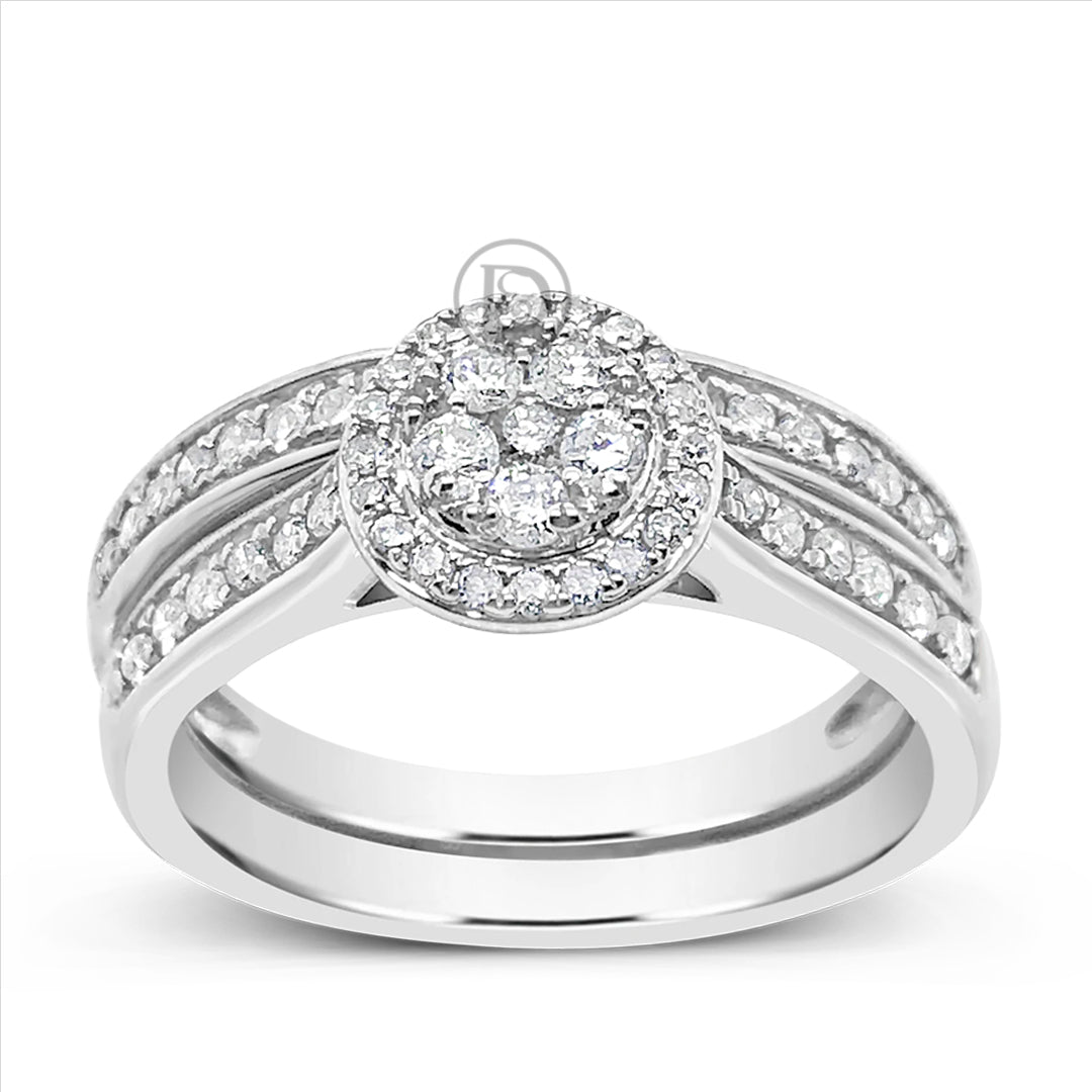 Diamond Halo Engagement Ring .50 CTW Round Cut 10K White Gold