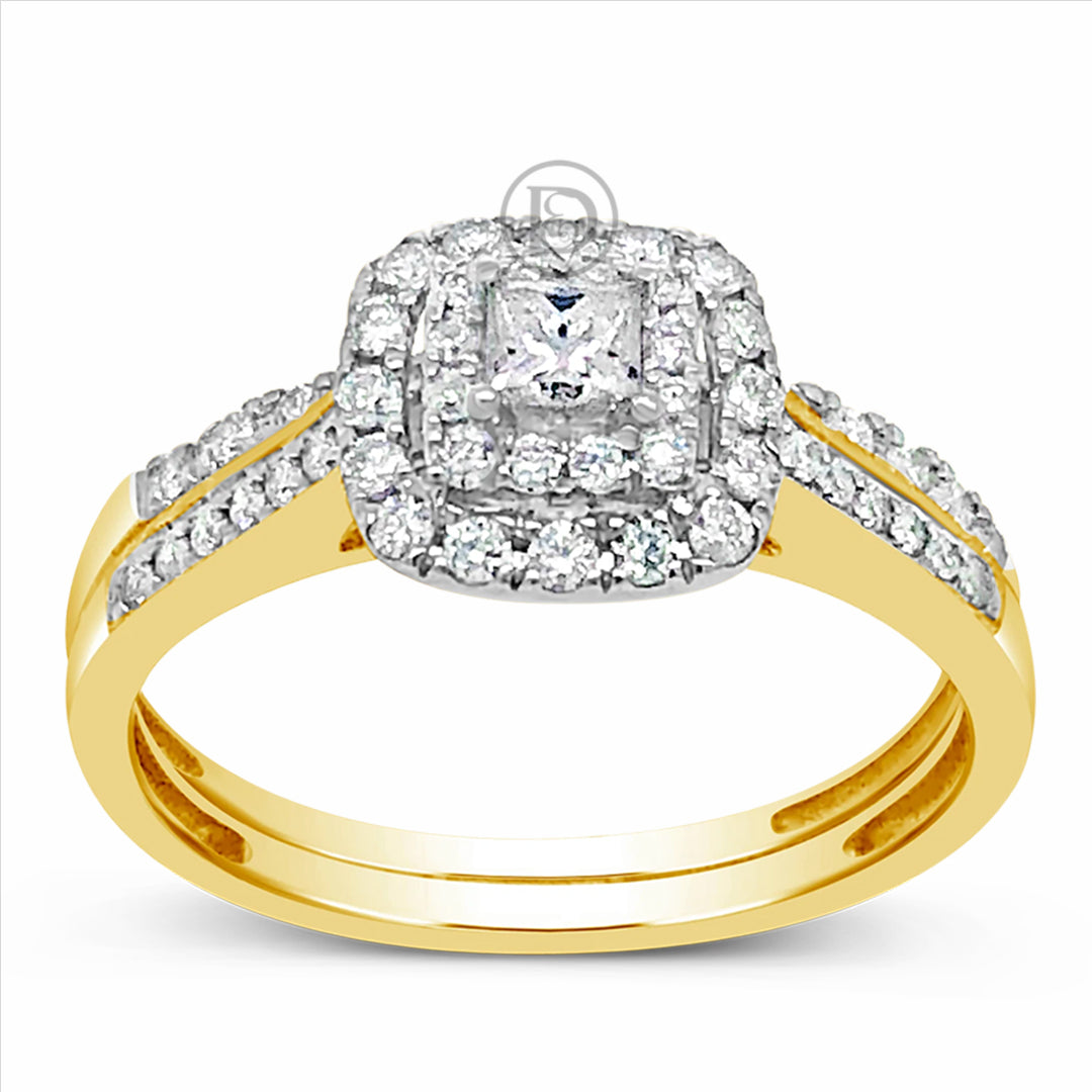 The stunning Diamond Halo Engagement Ring will show you how to create lasting memories of your special day. This dazzling ring is made of top-quality 14K yellow gold. Your loved one will be in awe of the 50-carat total weight of round-cut diamonds. This ring's premium diamonds are prong-set to maximize their sparkle, and the 14K yellow gold band is both strong and elegant. Reserve this gorgeous Diamond Halo Engagement Ring right up and make your special moment even more memorable.
